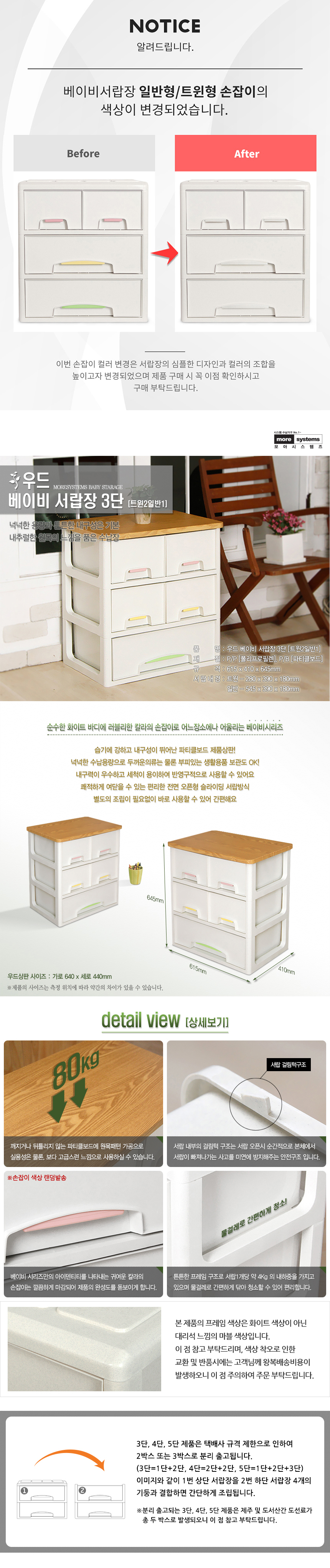 모아시스템즈 우드 베이비 3단 서랍장 트윈2 플라스틱서랍장 수납장 정리함