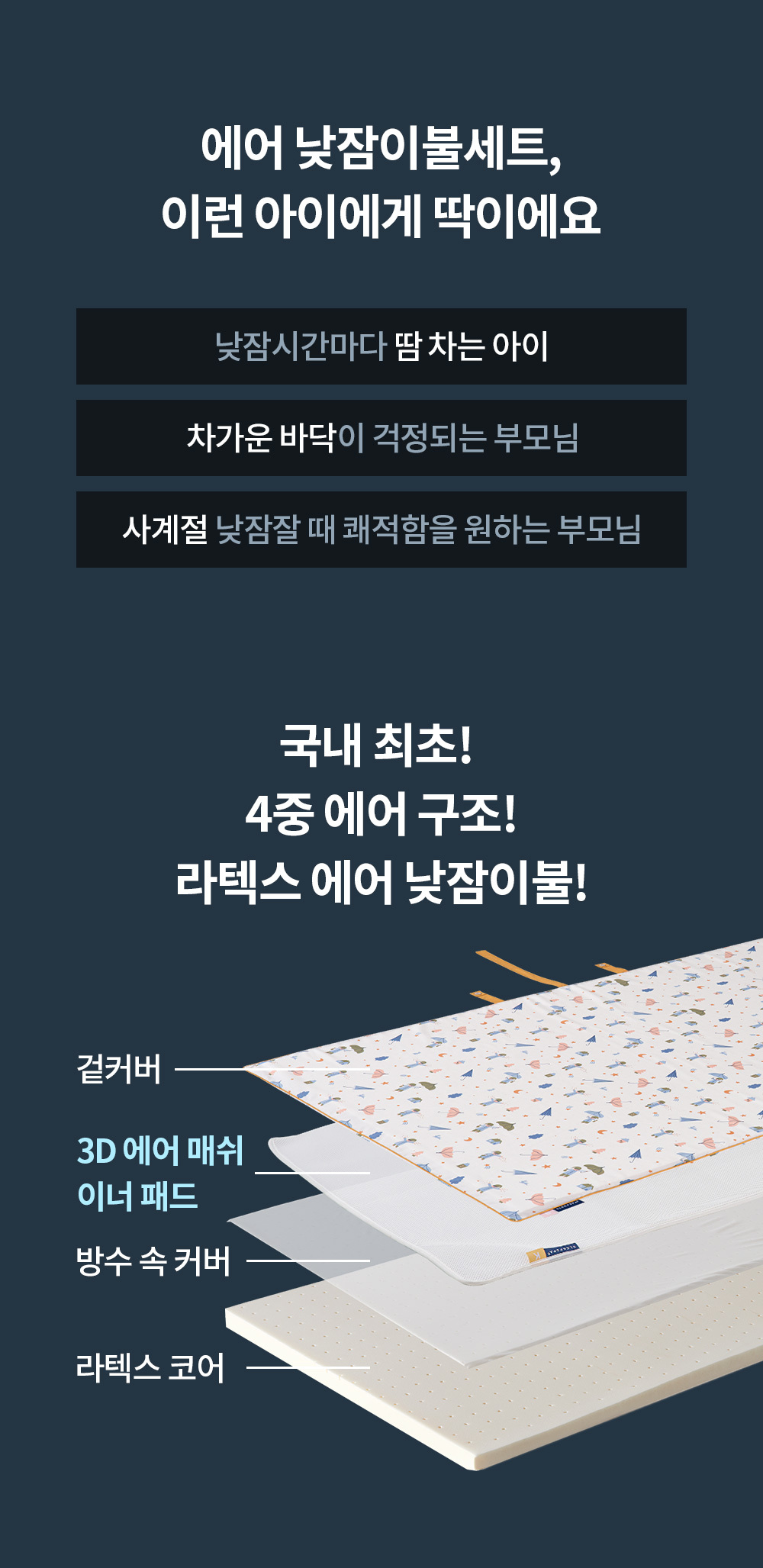 깨끗하고 편안한 라텍스 어린이집 낮잠이불세트-토들러세트
