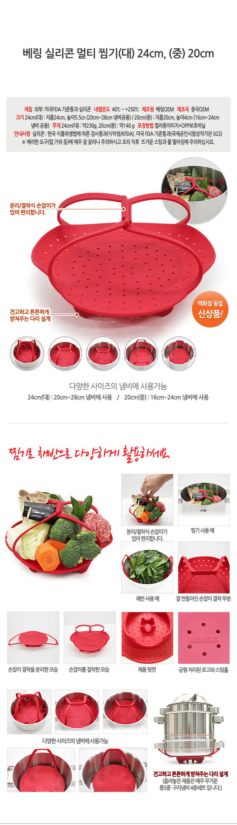 베링 실리콘 멀티찜기 중(20cm)/대(24cm)