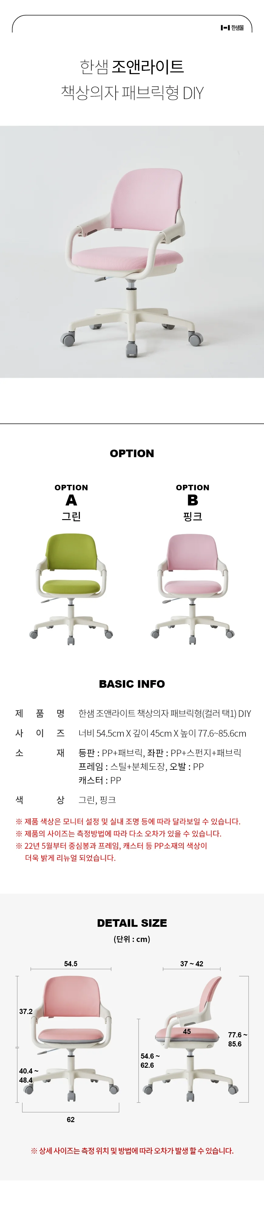 조앤라이트 책상의자 패브릭형(컬러 택1)DIY