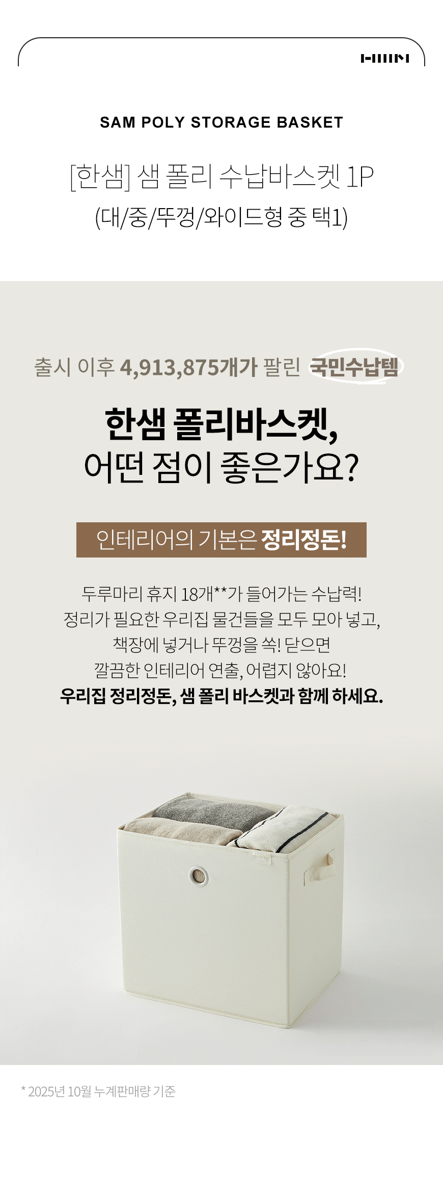샘폴리 수납 바스켓 다용도 리빙박스 정리함 1P