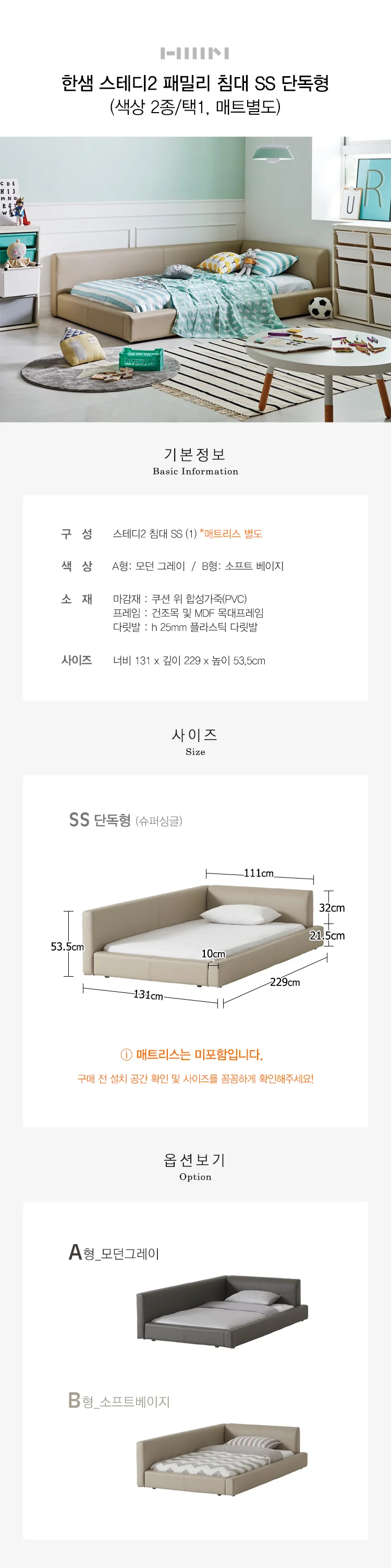 스테디2 패밀리침대 SS (매트별도)