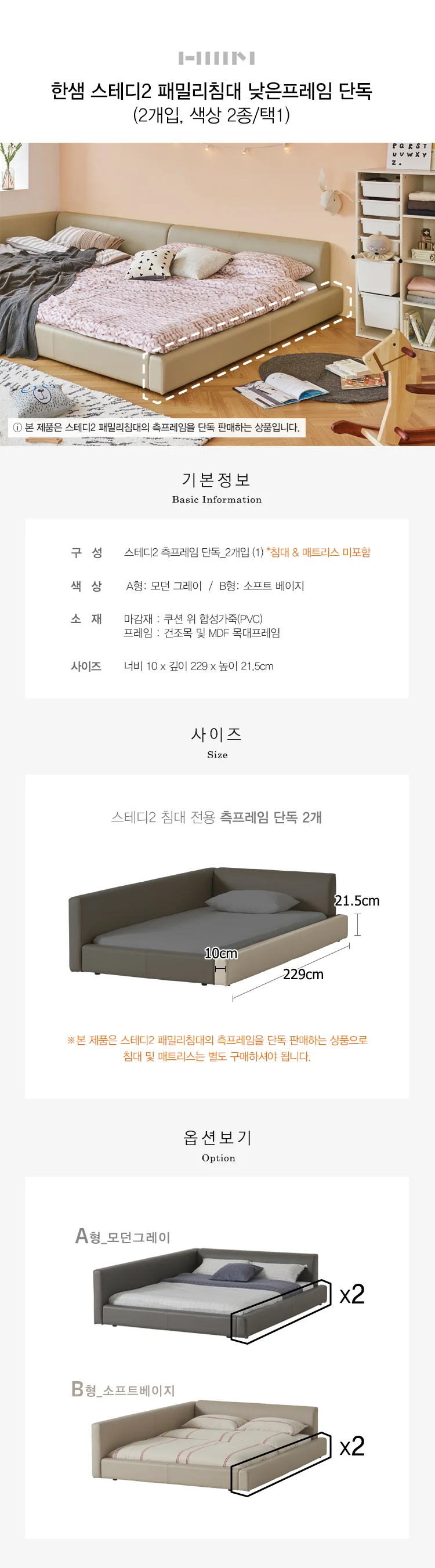스테디2 패밀리침대 측프레임 단독_2개입 (색상2종)