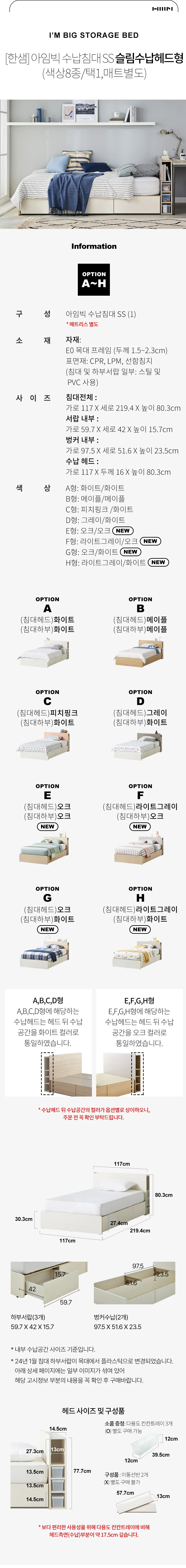 아임빅 수납침대 SS 슬림수납헤드형 (매트별도)