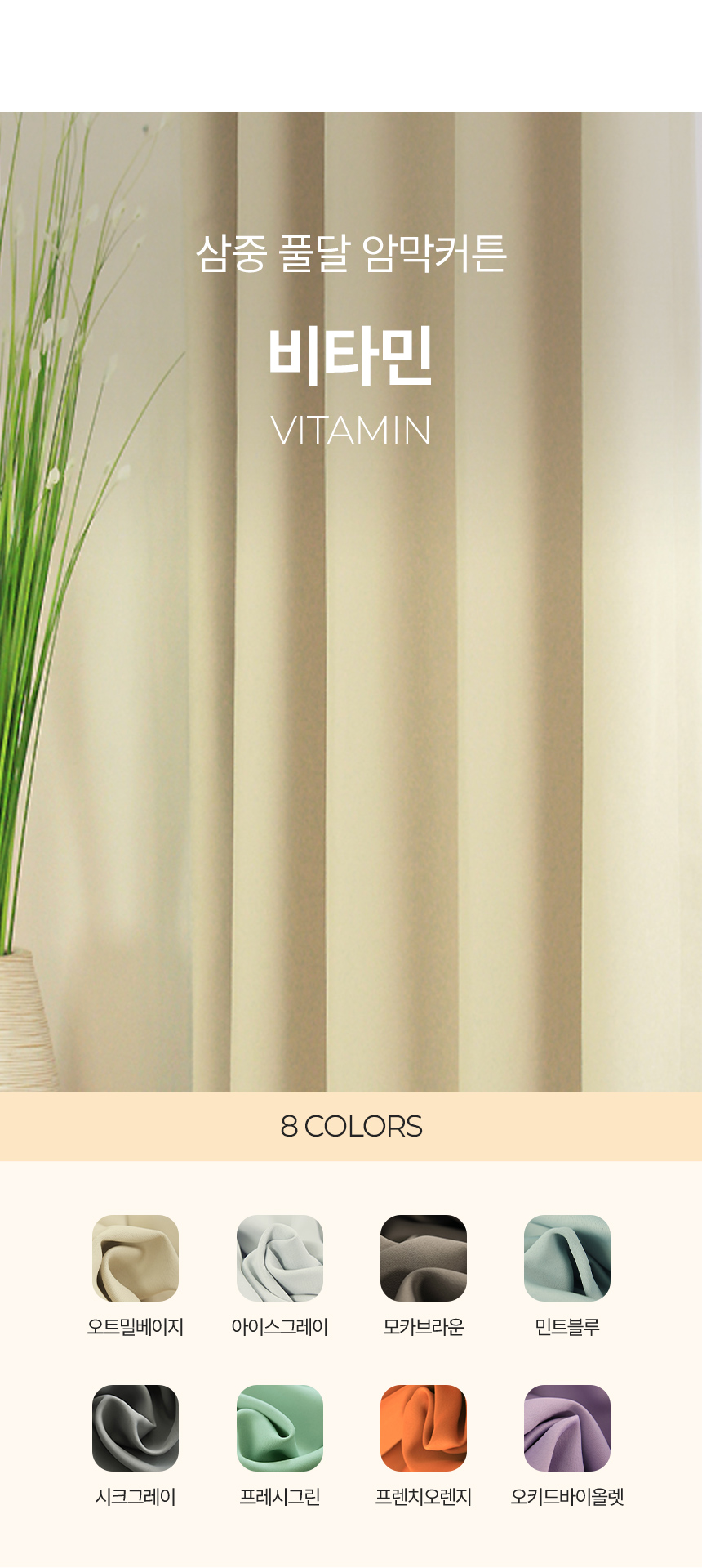 핀꽂고세탁 비타민 풀달 자외선차단 거실 안방 암막커튼 8colors