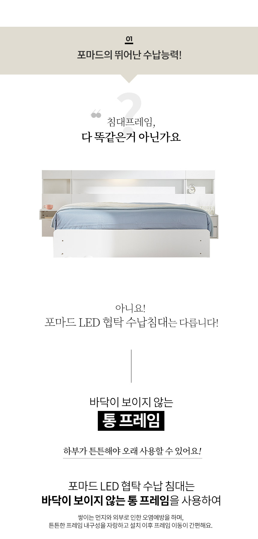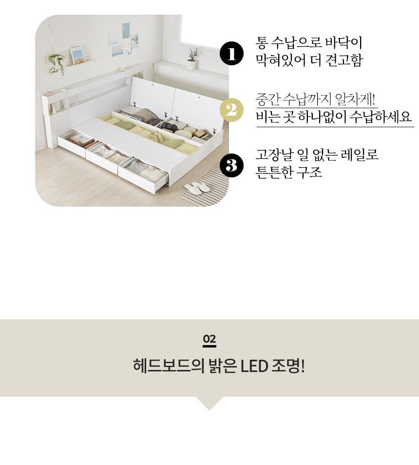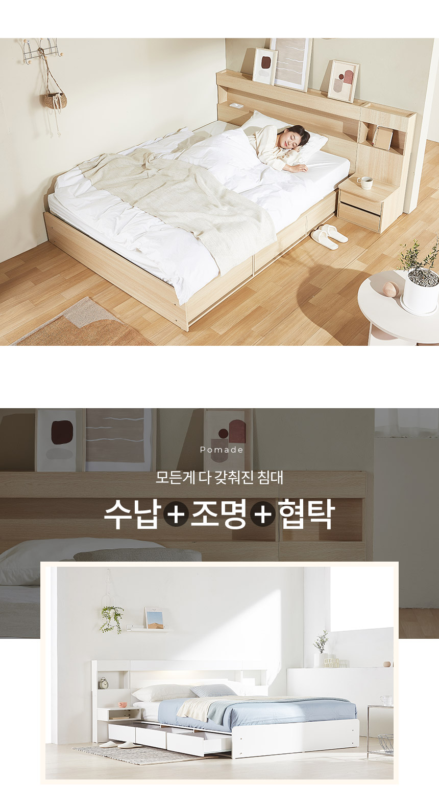 호텔형 파로마 포마드 LED 수납침대 서랍침대 Q 매트리스 선택