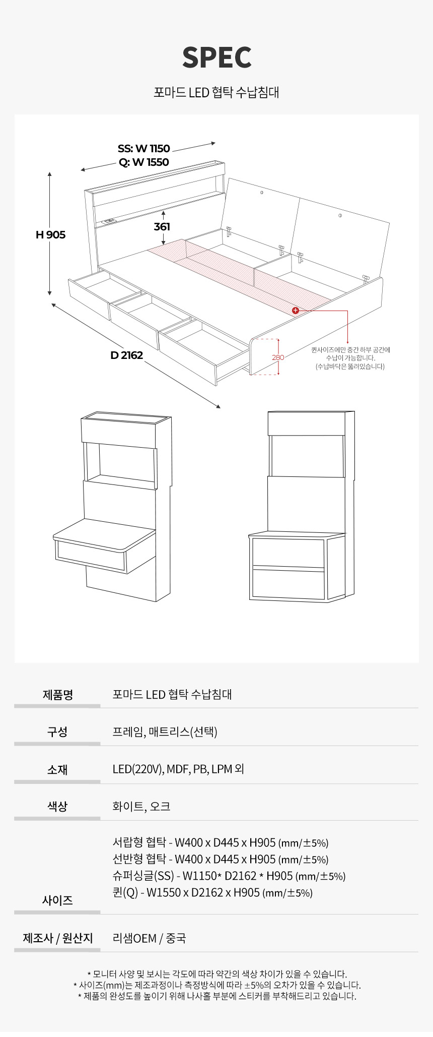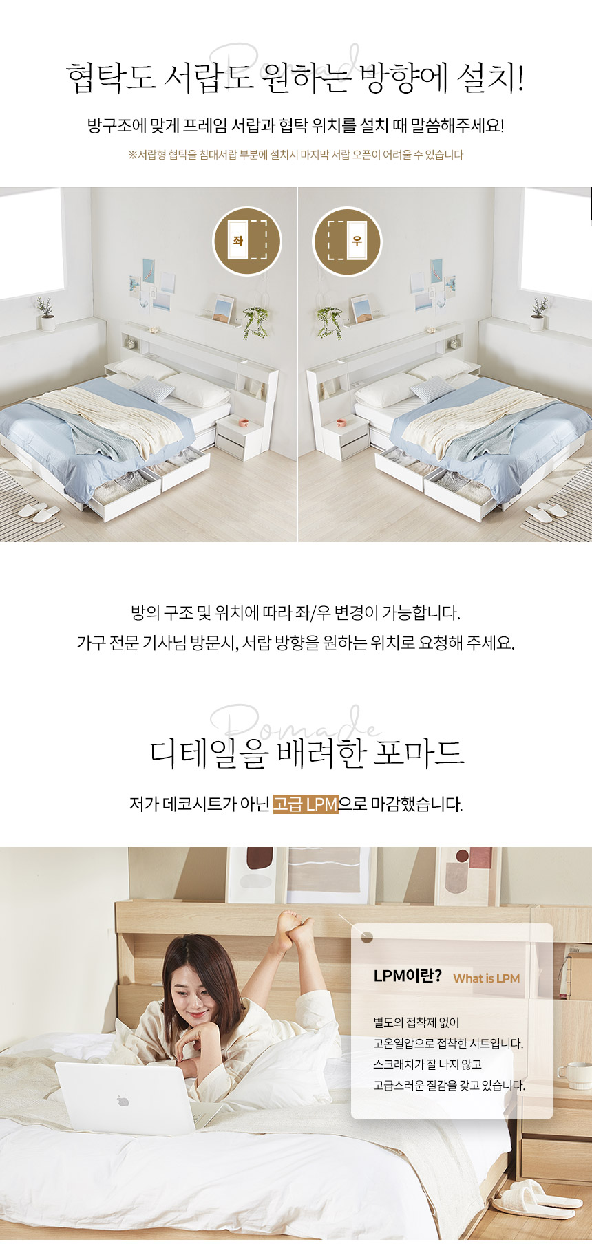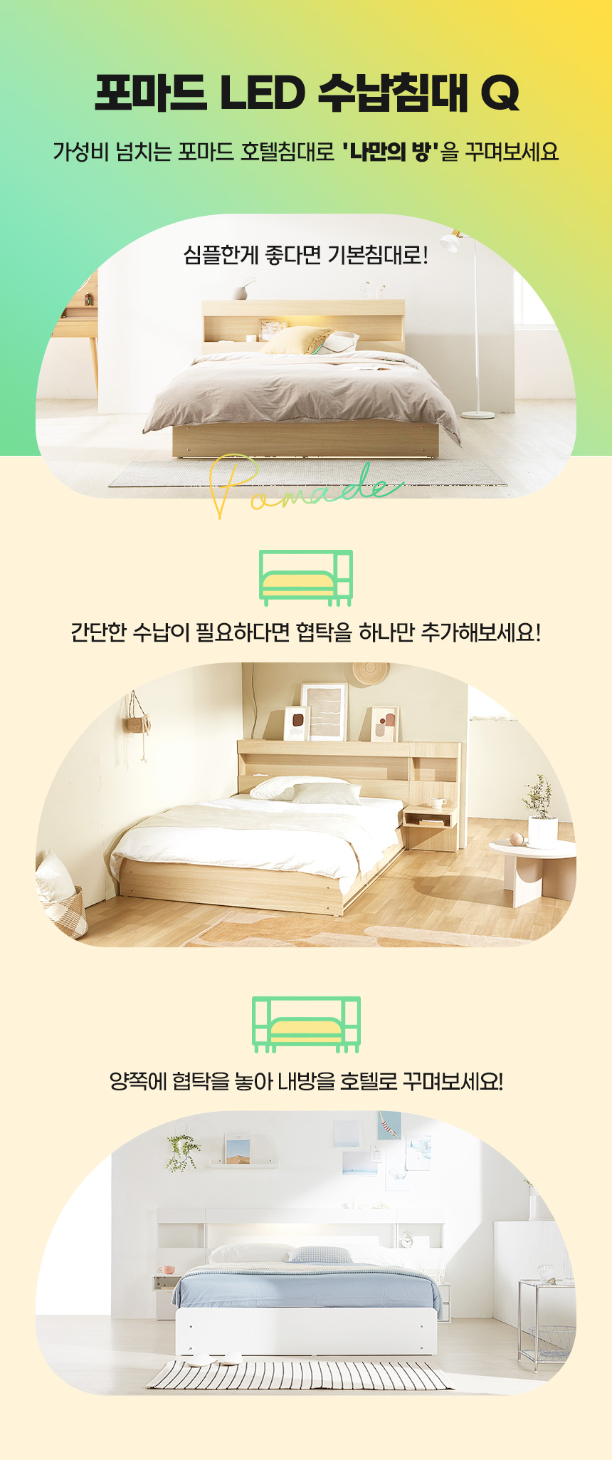 호텔형 파로마 포마드 LED 수납침대 서랍침대 Q 매트리스 선택