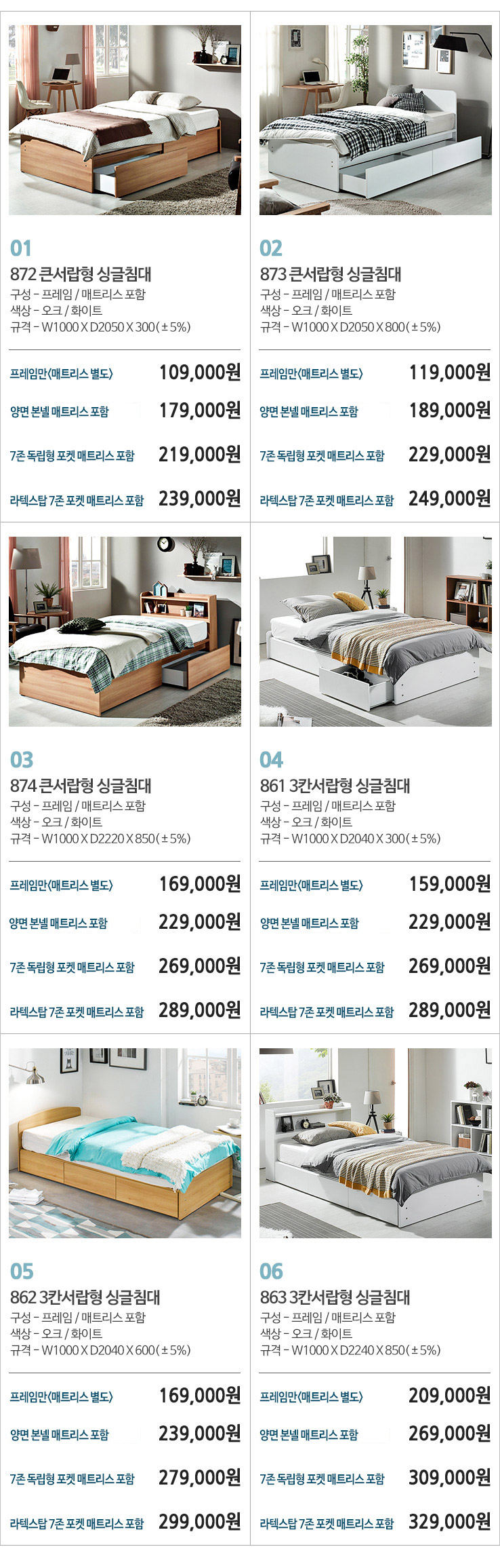 가구야 1인가구/작은방에 어울리는 서랍형 싱글침대 시리즈 (매트리스 택1)