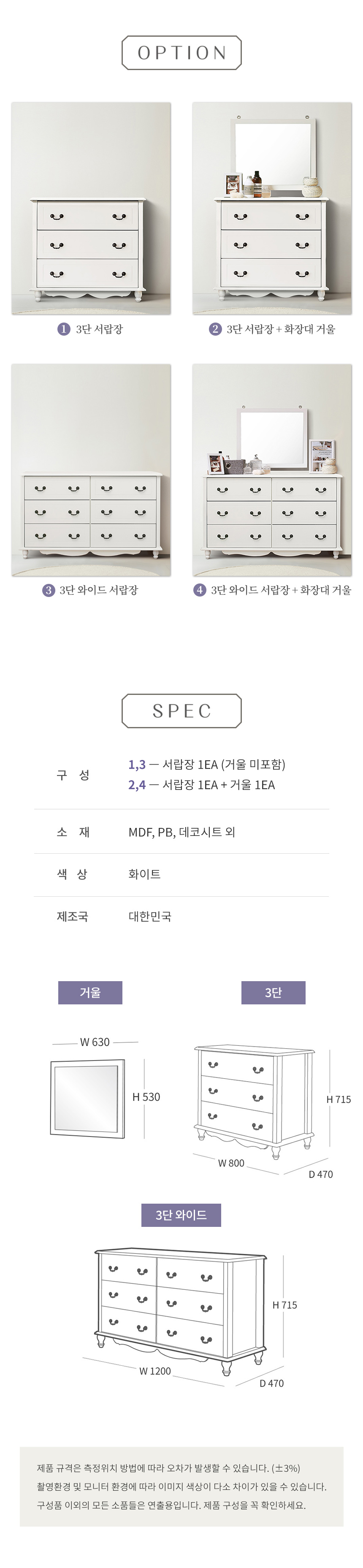 홈데코 러블리 화이트 수납장 화장대 시리즈 (4종 택1)