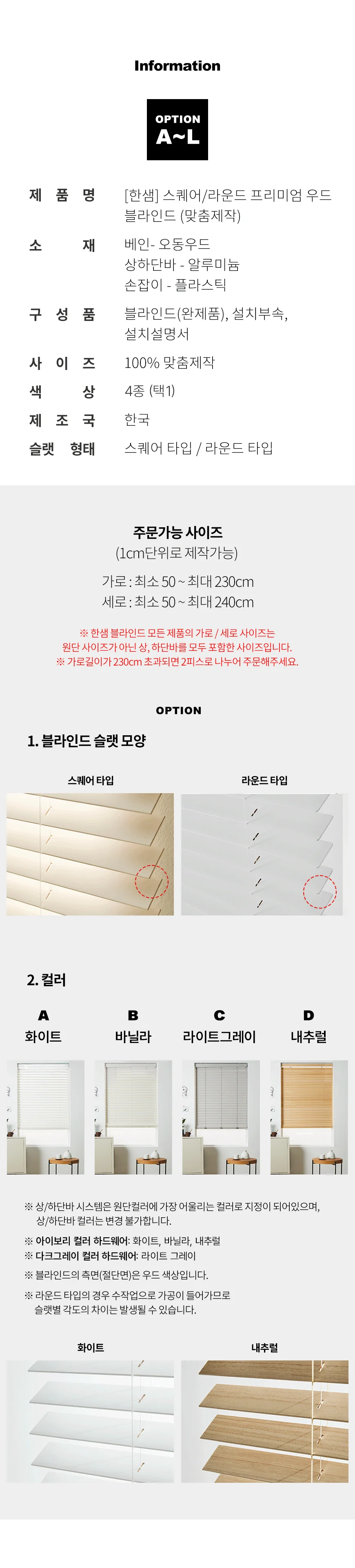 프리미엄 우드 블라인드 스퀘어/라운드형 (맞춤제작)