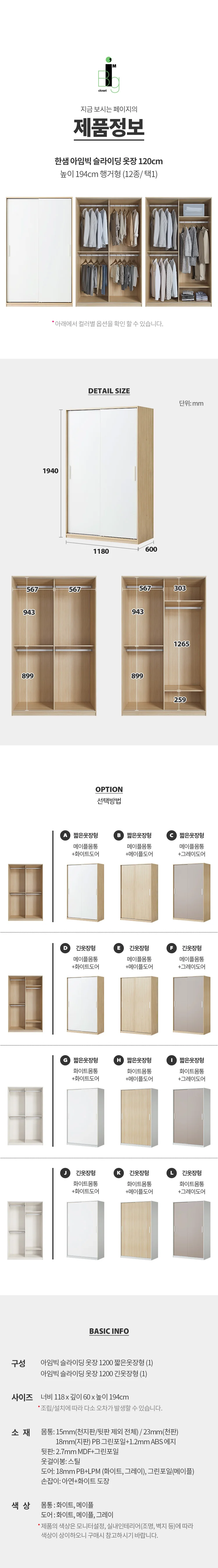 아임빅 슬라이딩 옷장 120cm 행거형 짧은옷장 12종