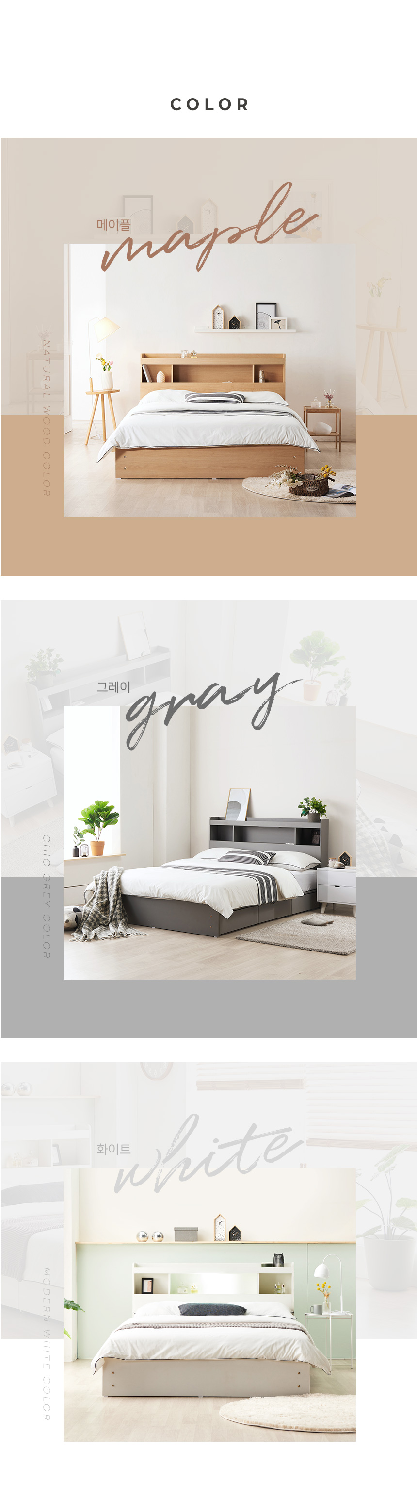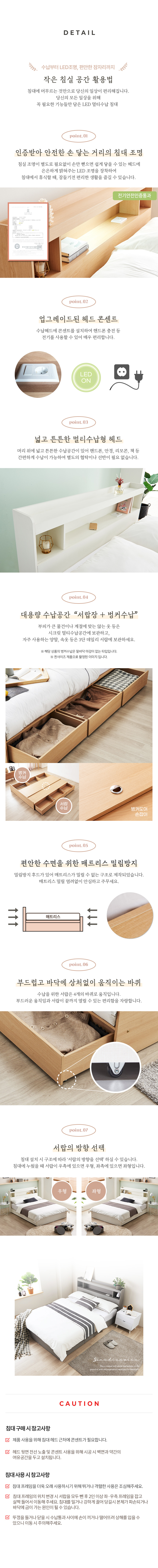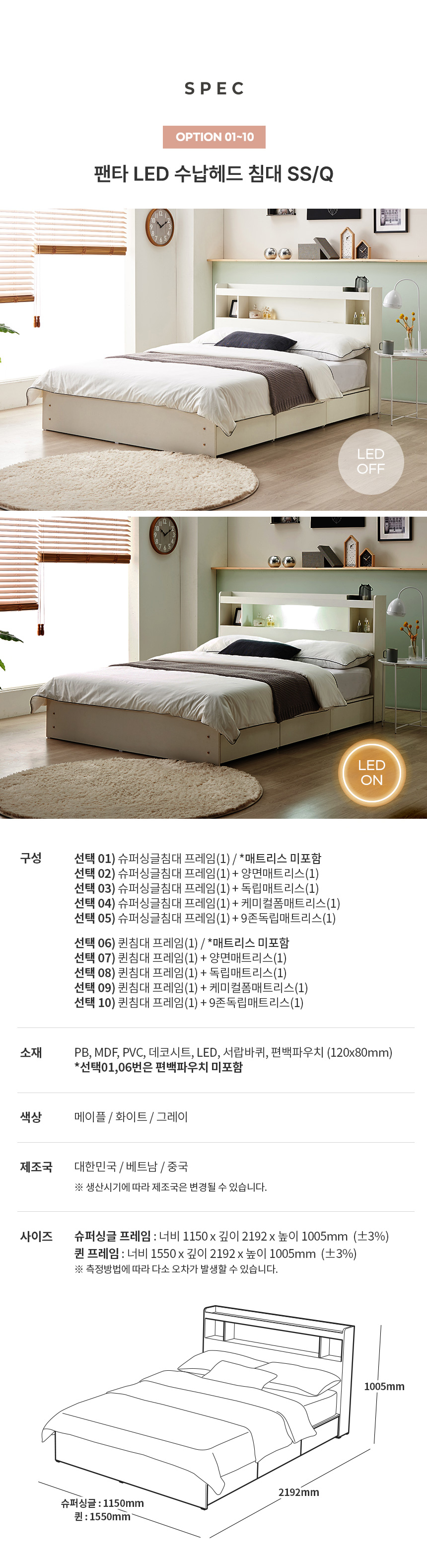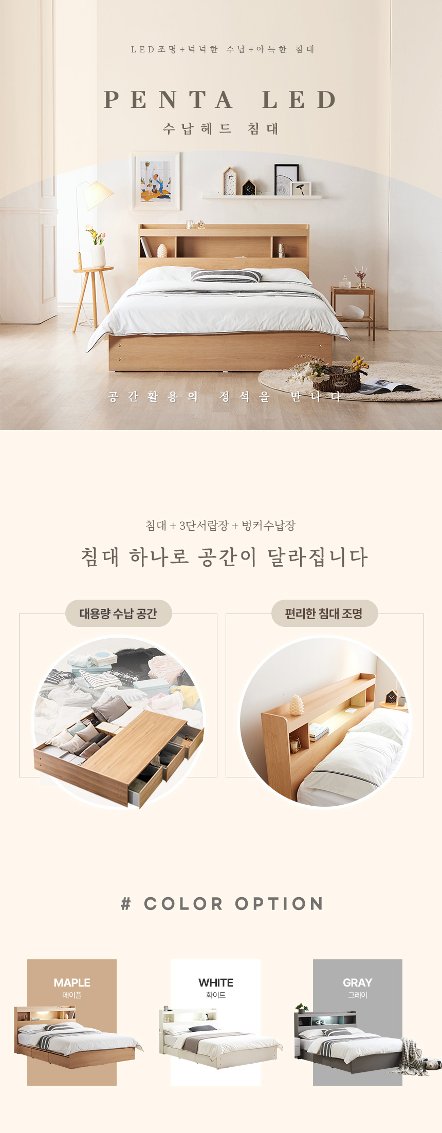 팬타 LED 1단 3서랍 수납침대 (SS / Q) 3colors