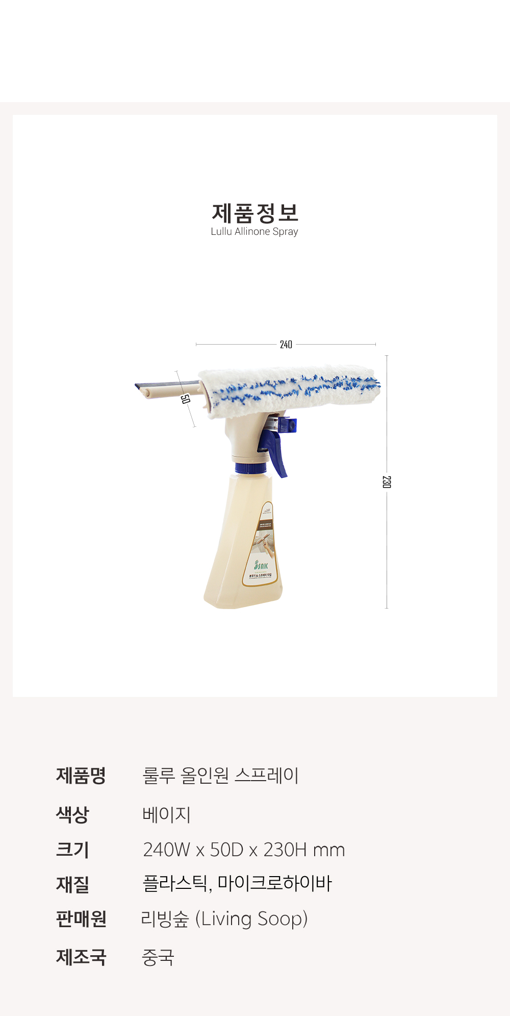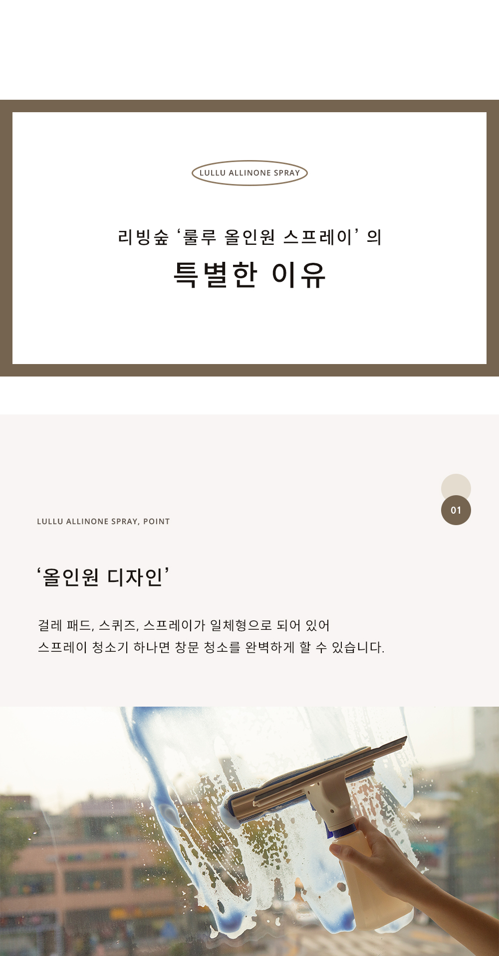 리빙숲 룰루 올인원 스프레이 청소기 스퀴즈 창문청소 유리닦이