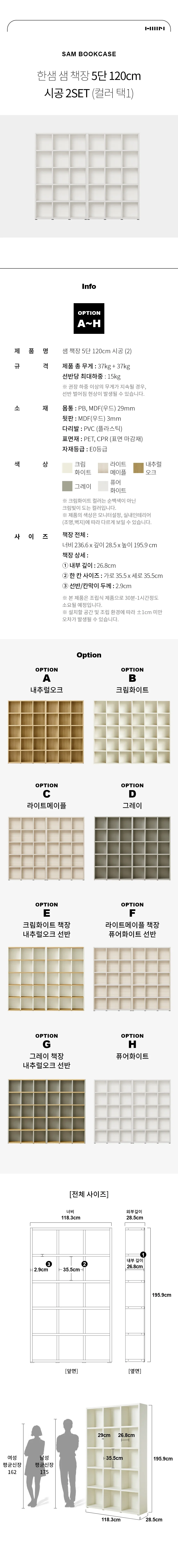 샘 책장 5단 120cm X 2set 시공(컬러 택1)
