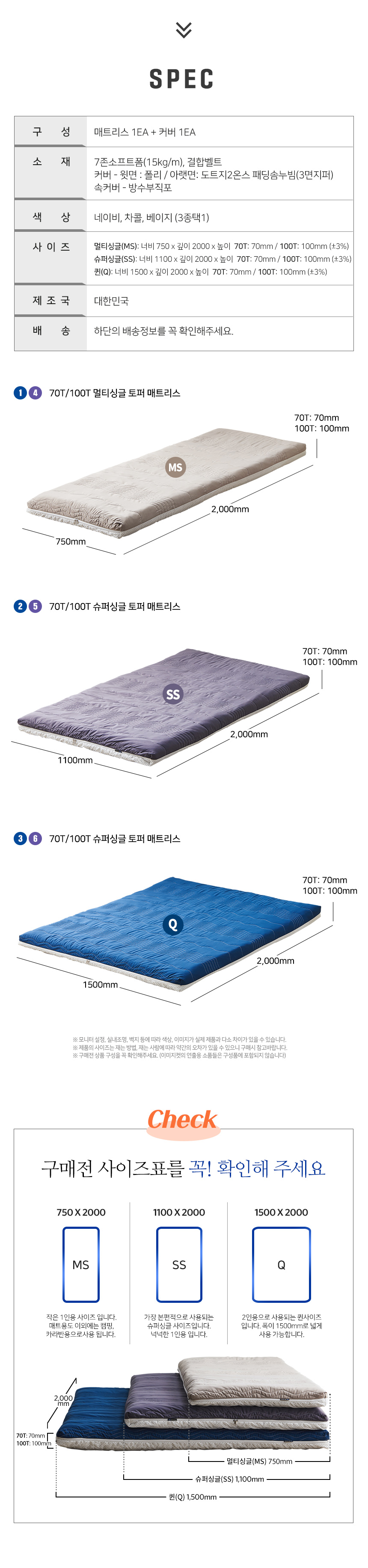 EZ매트 해피슬립 토퍼 매트리스 MS/SS/Q 3colors