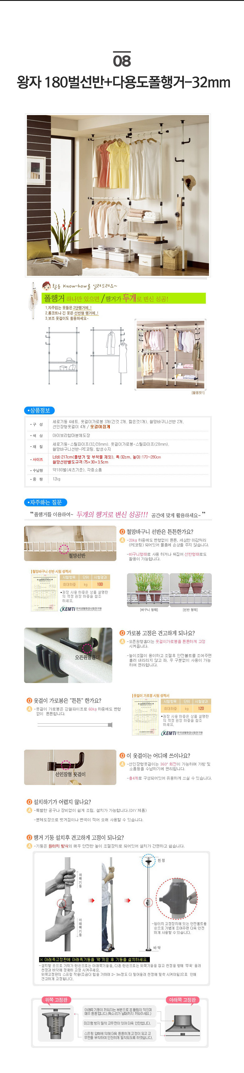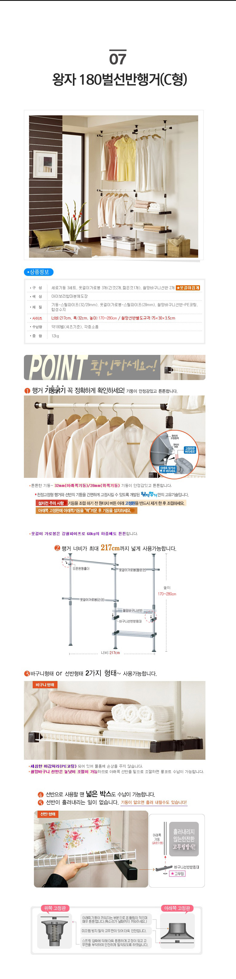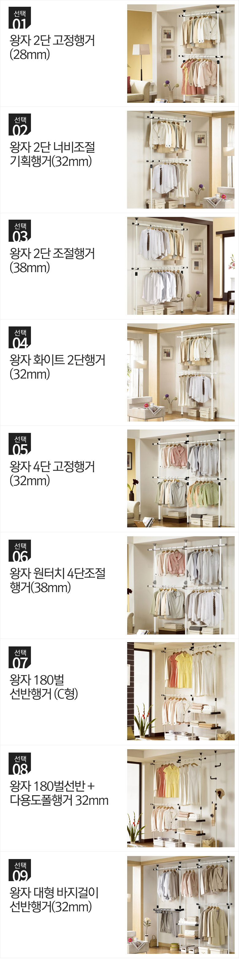 왕자 고정행거&선반행거 9종/택1