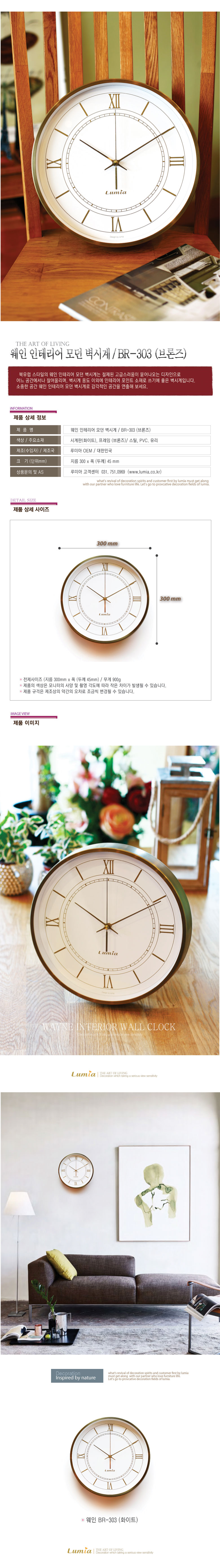 [루미아] 웨인 인테리어 모던 벽시계 화이트 BR-303(브론즈) (무소음 벽걸이시계/결혼선물/집들이선물)
