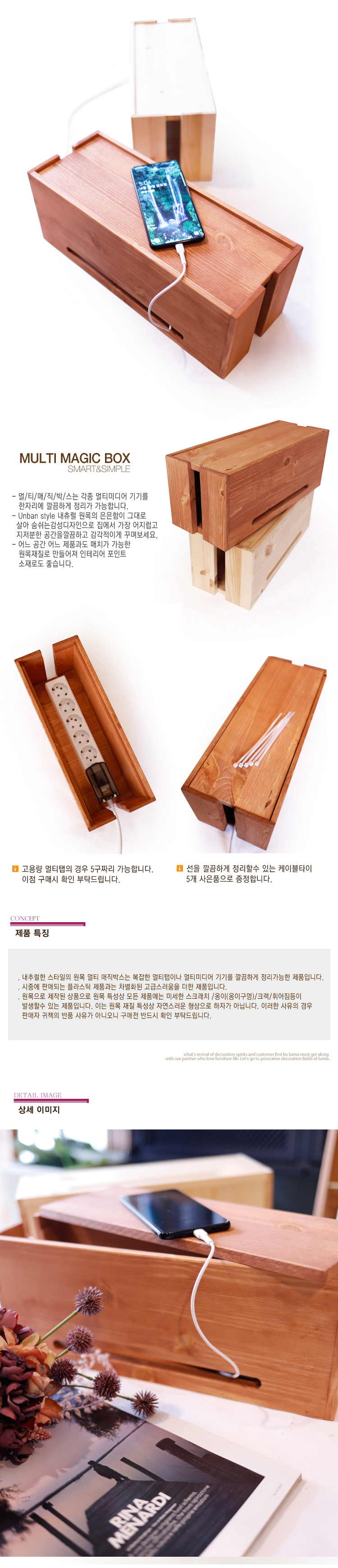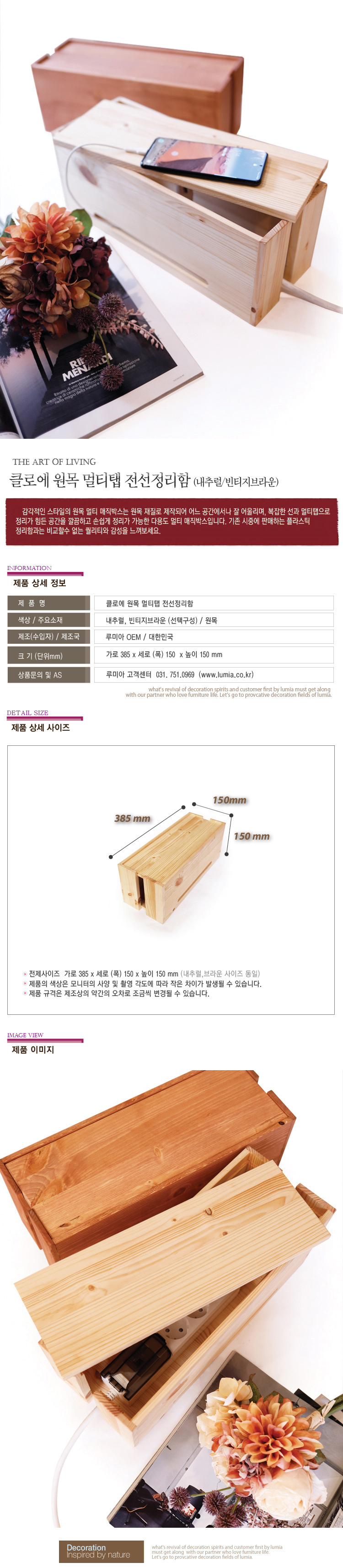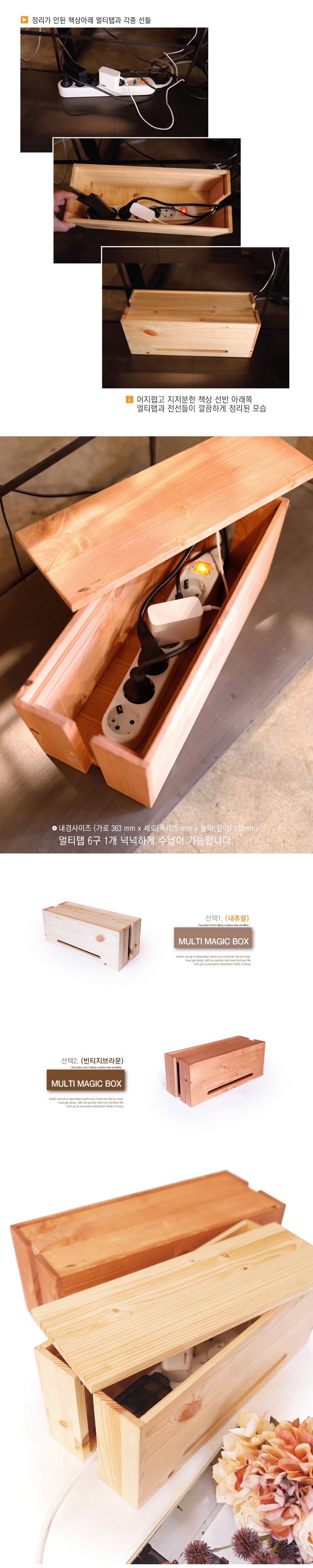 클로에 원목 멀티탭 전선정리함 (내추럴/빈티지브라운)