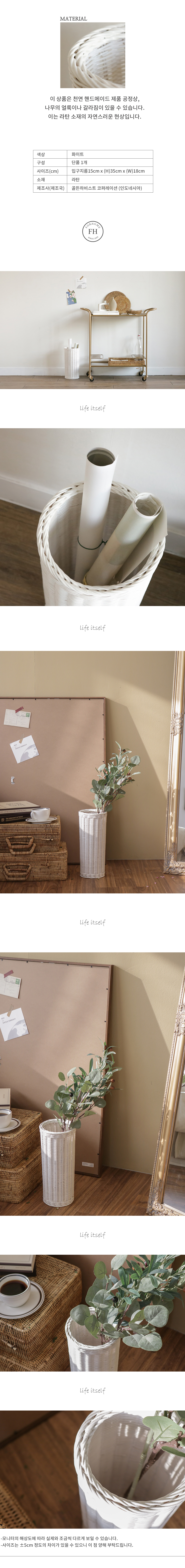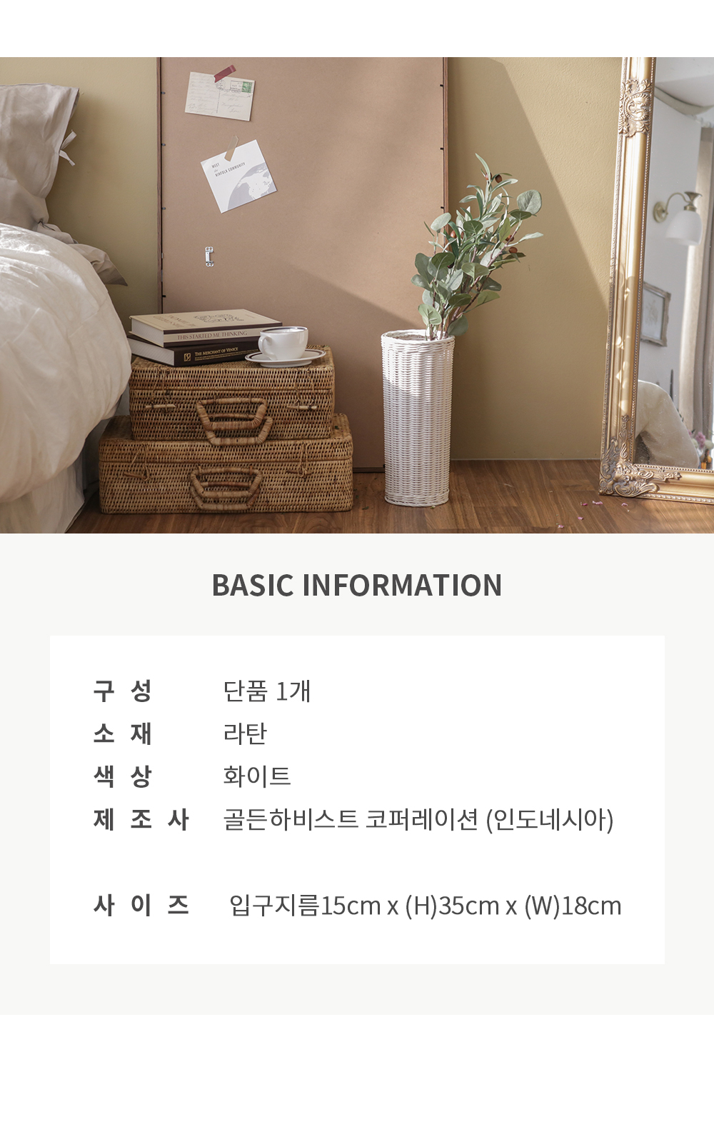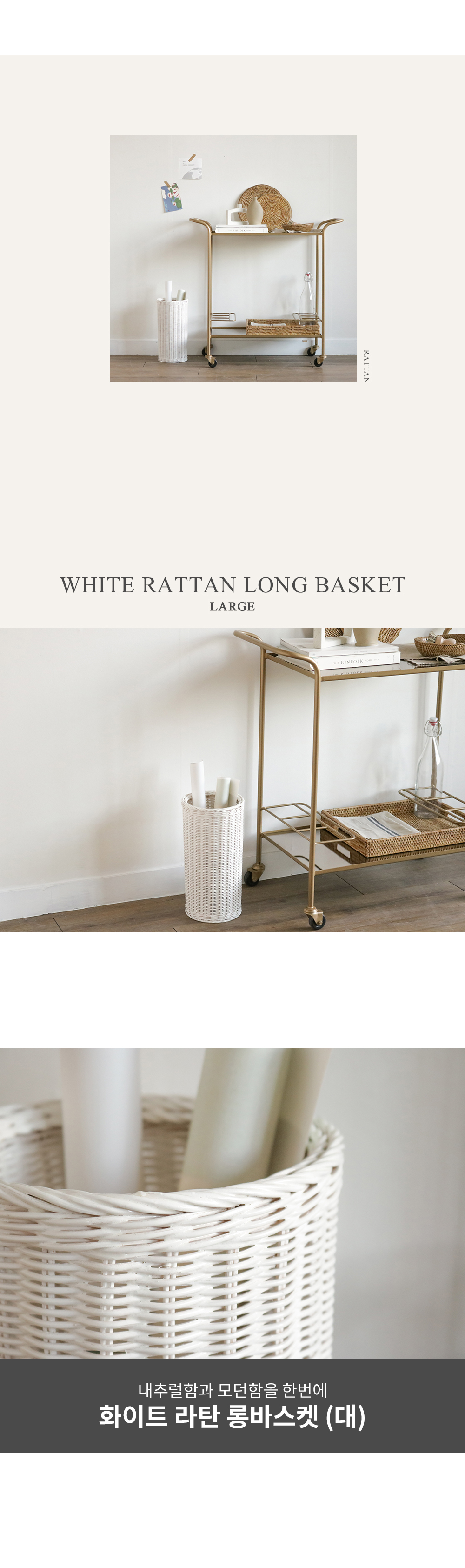 [포홈]화이트 라탄 롱바스켓 (대)