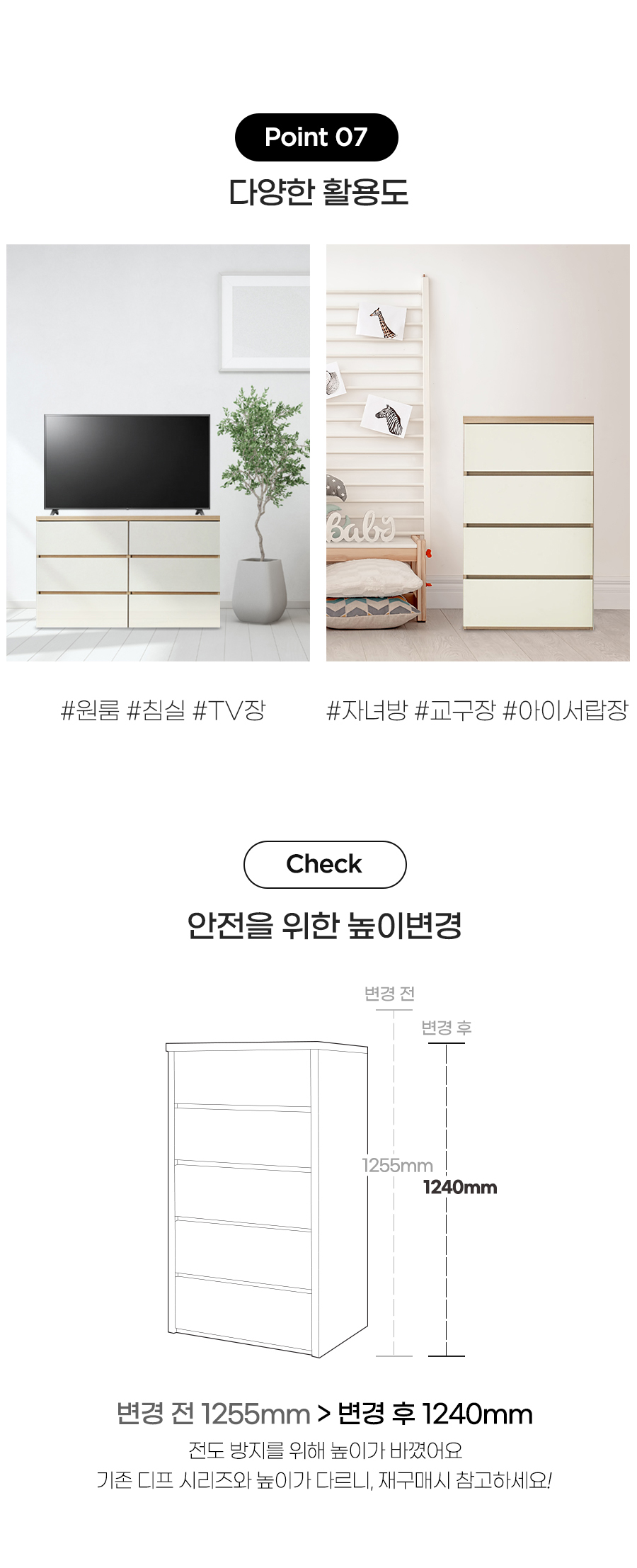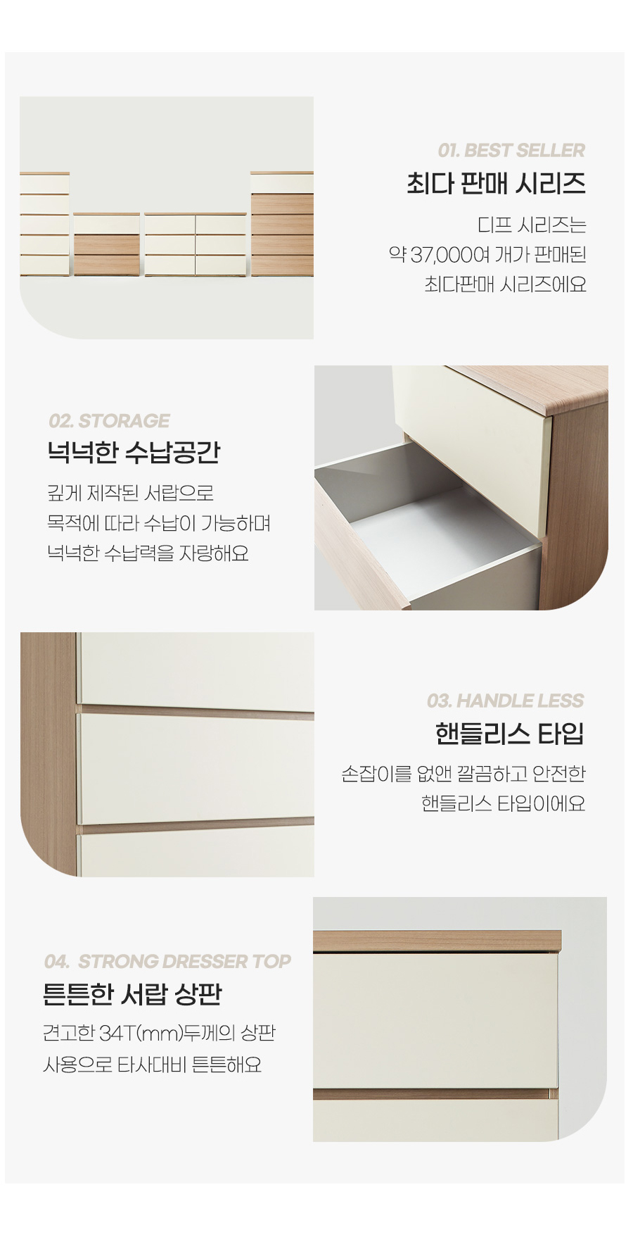 [특가 ~2/9]디프 속깊은 5단 서랍장 800 넉넉한 수납력 2color
