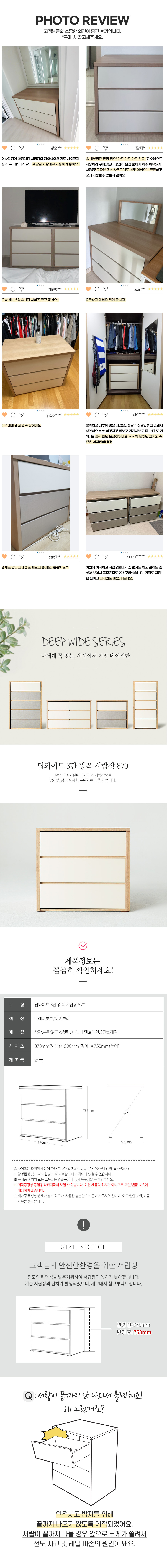 딥와이드 3단 광폭 서랍장 870 넉넉한 수납 2color
