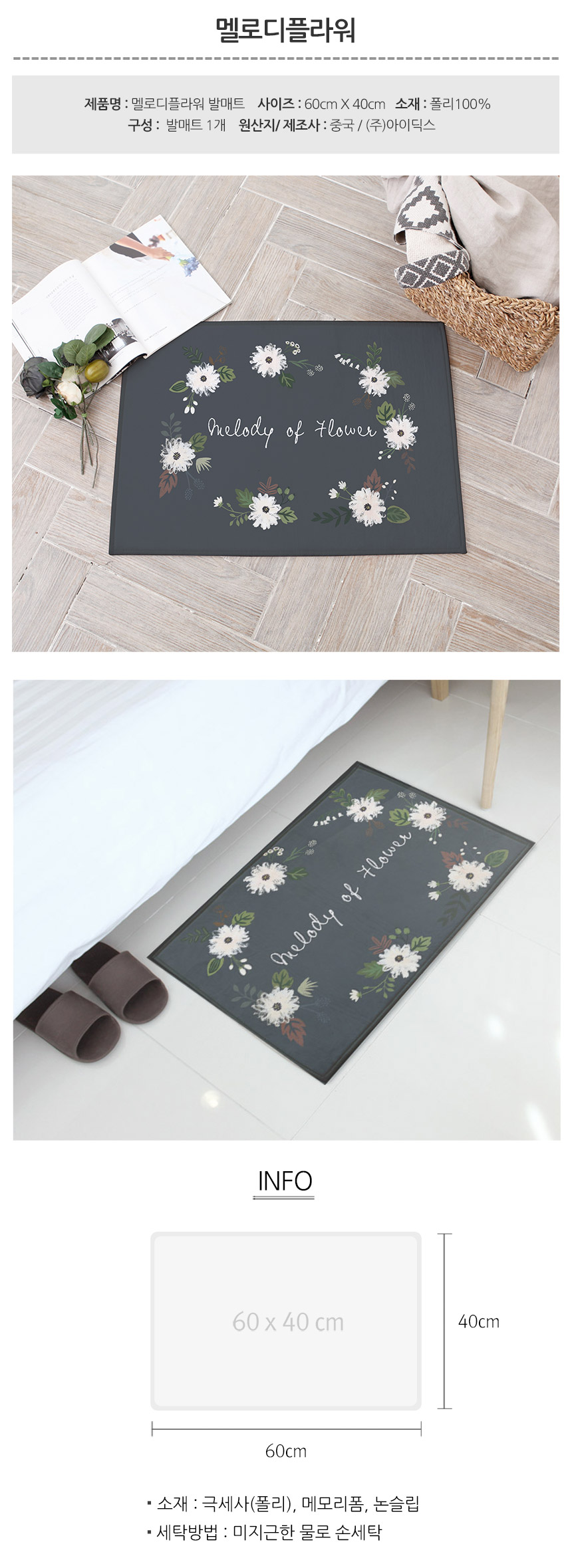 논슬립 러그 아기방꾸미기 60x40cm 멜로디플라워