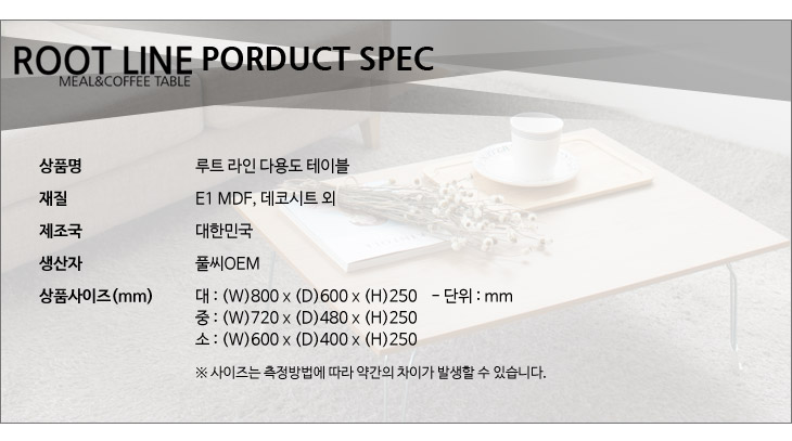 루트 라인 다용도 상 좌식테이블 소 중 대