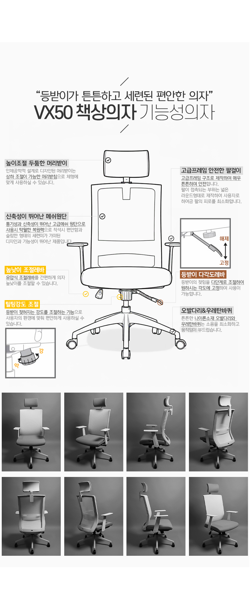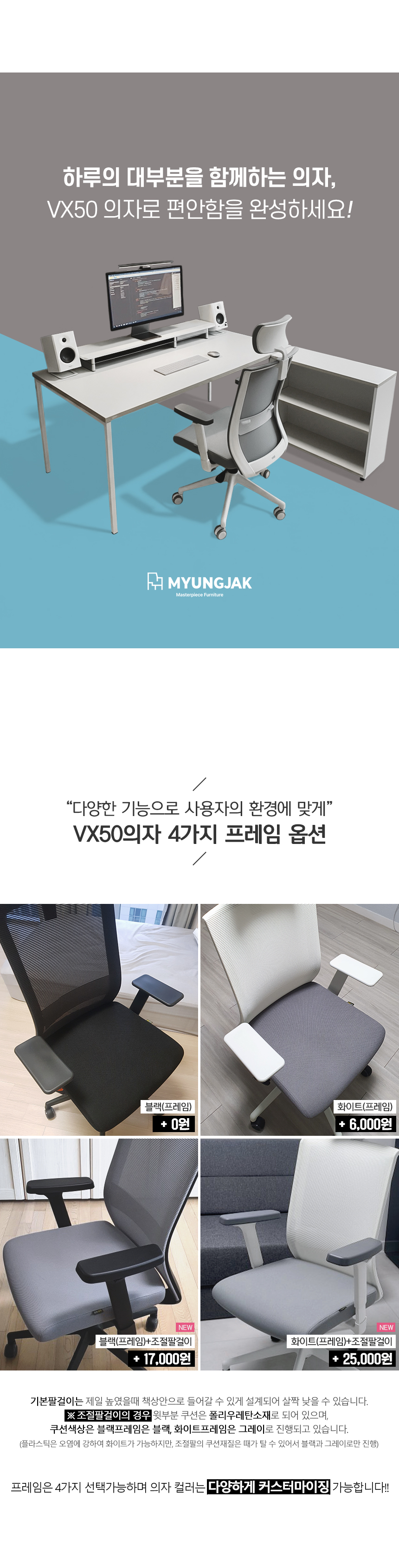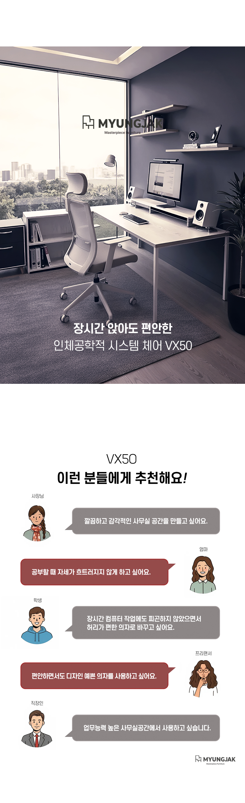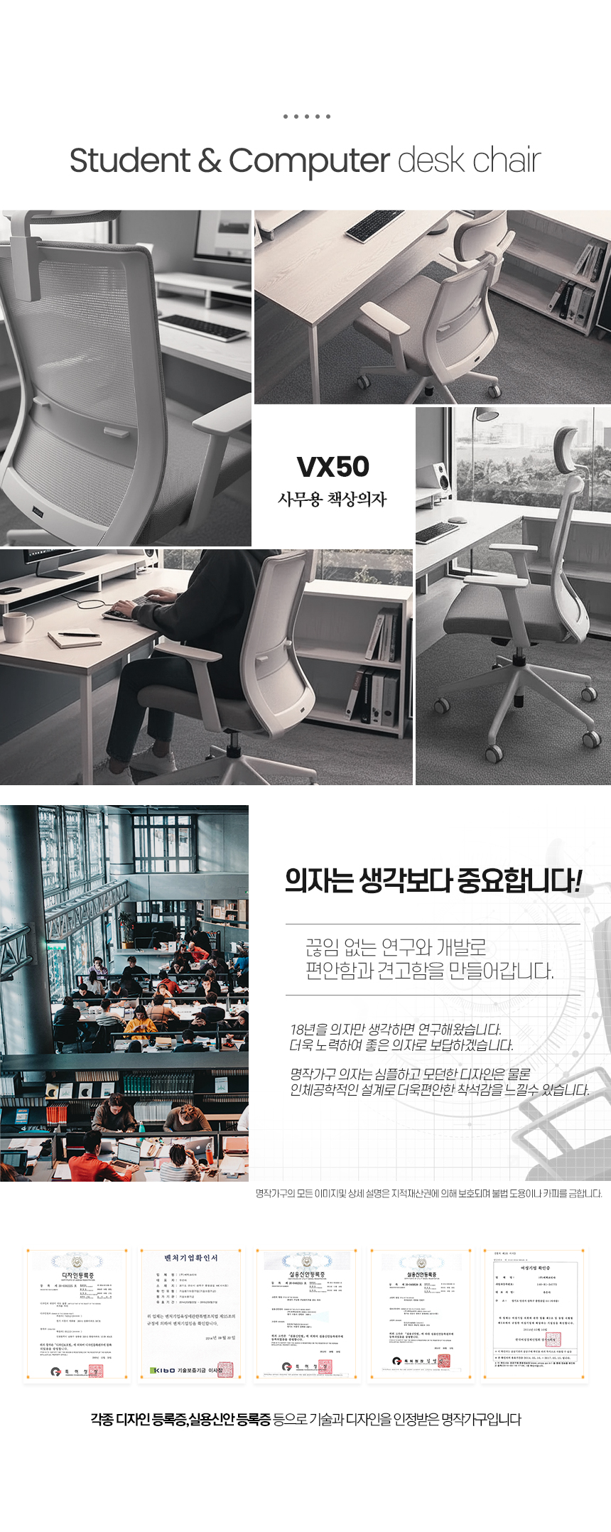 명작가구 컴퓨터책상의자 VX50 학생 허리 편안한 사무용 사무실 게이밍 독서실 메쉬 공부 병원