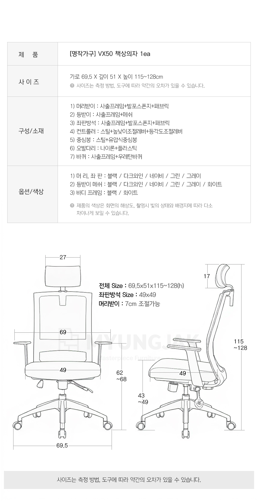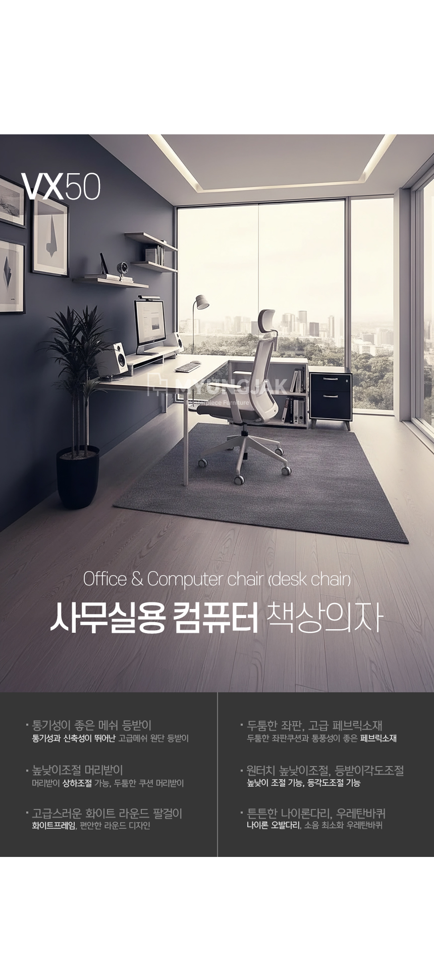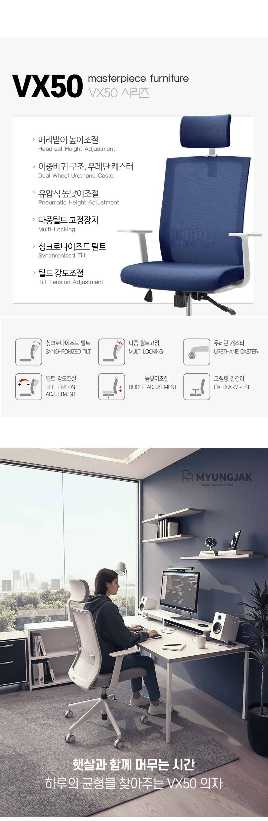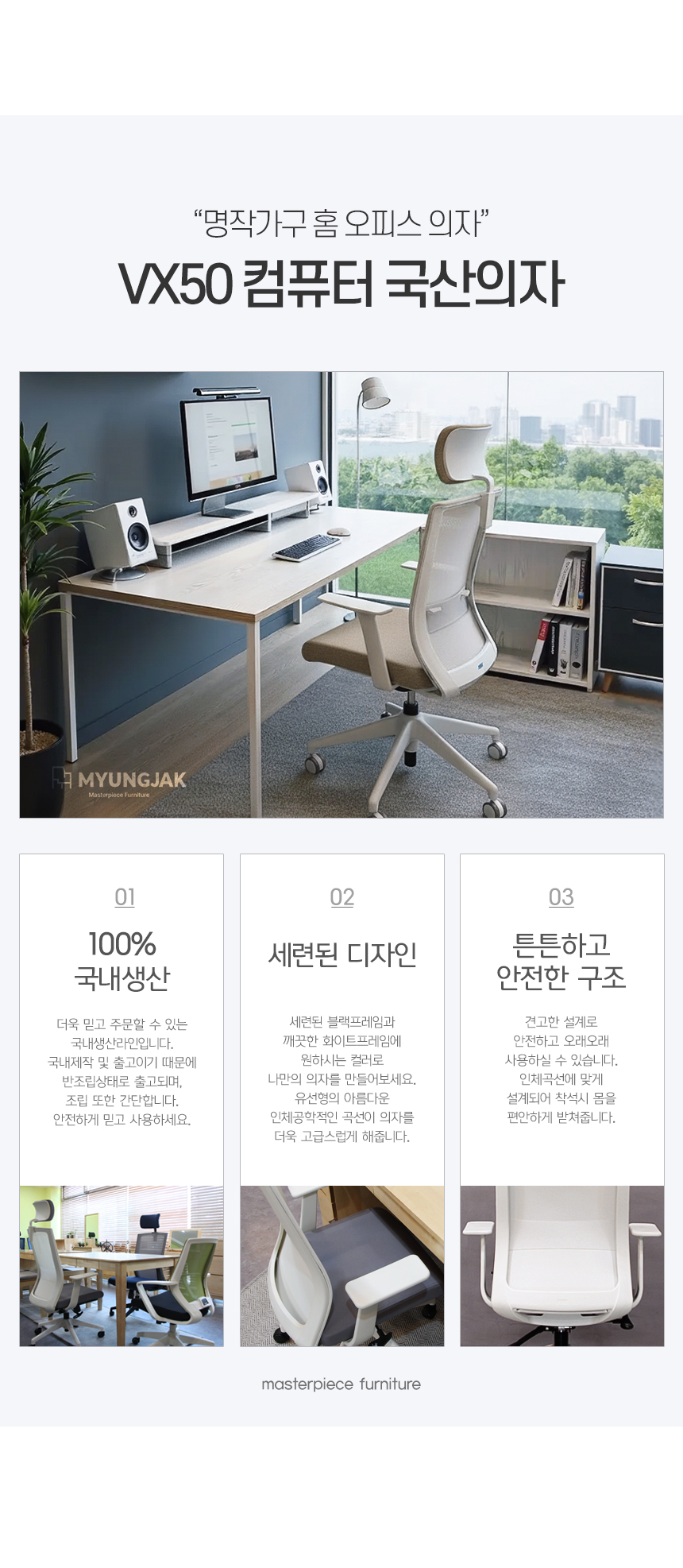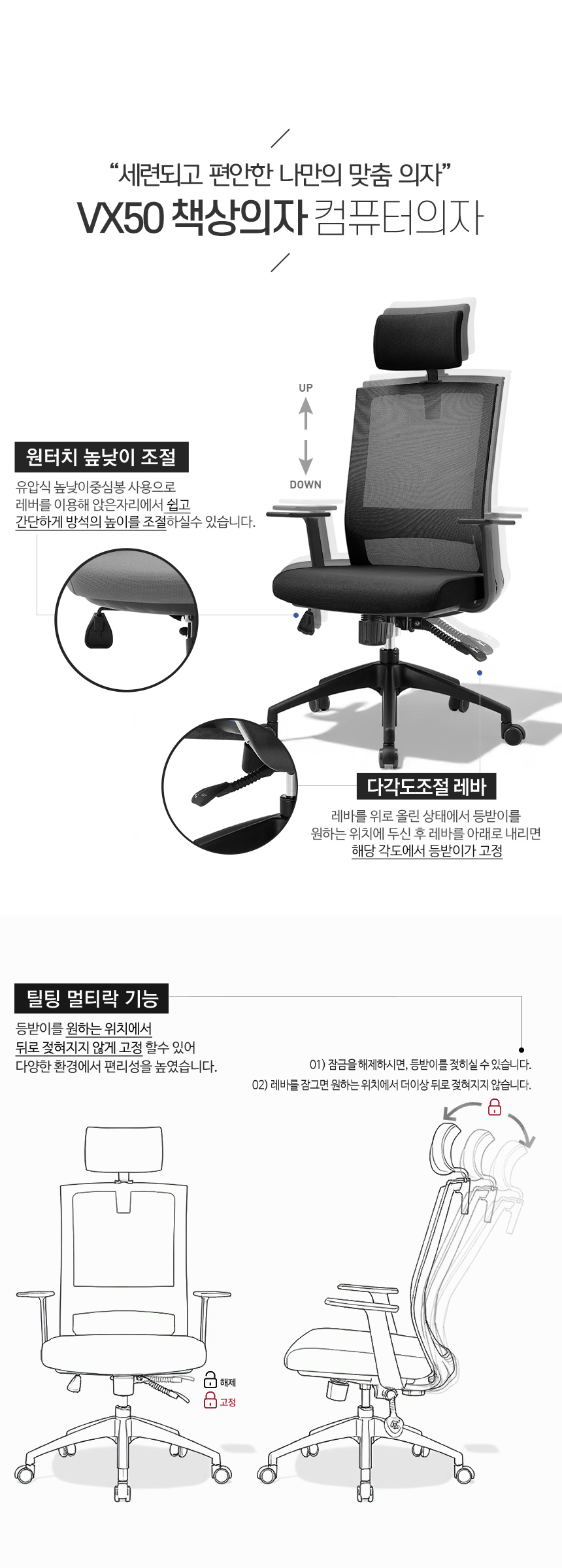 명작가구 컴퓨터책상의자 VX50 학생 허리 편안한 사무용 사무실 게이밍 독서실 메쉬 공부 병원