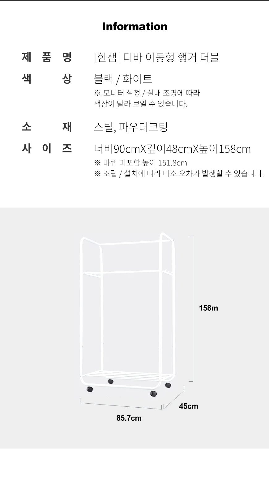 [특가~12/22]디바 이동형 행거 더블 화이트/블랙