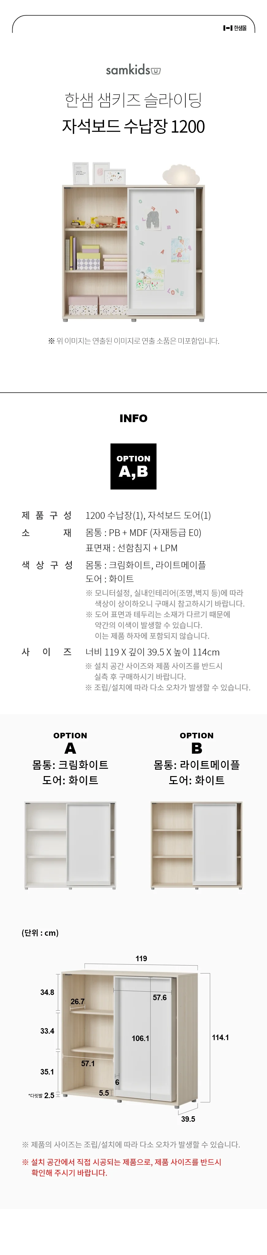 샘키즈 슬라이딩 자석보드 수납장 1200