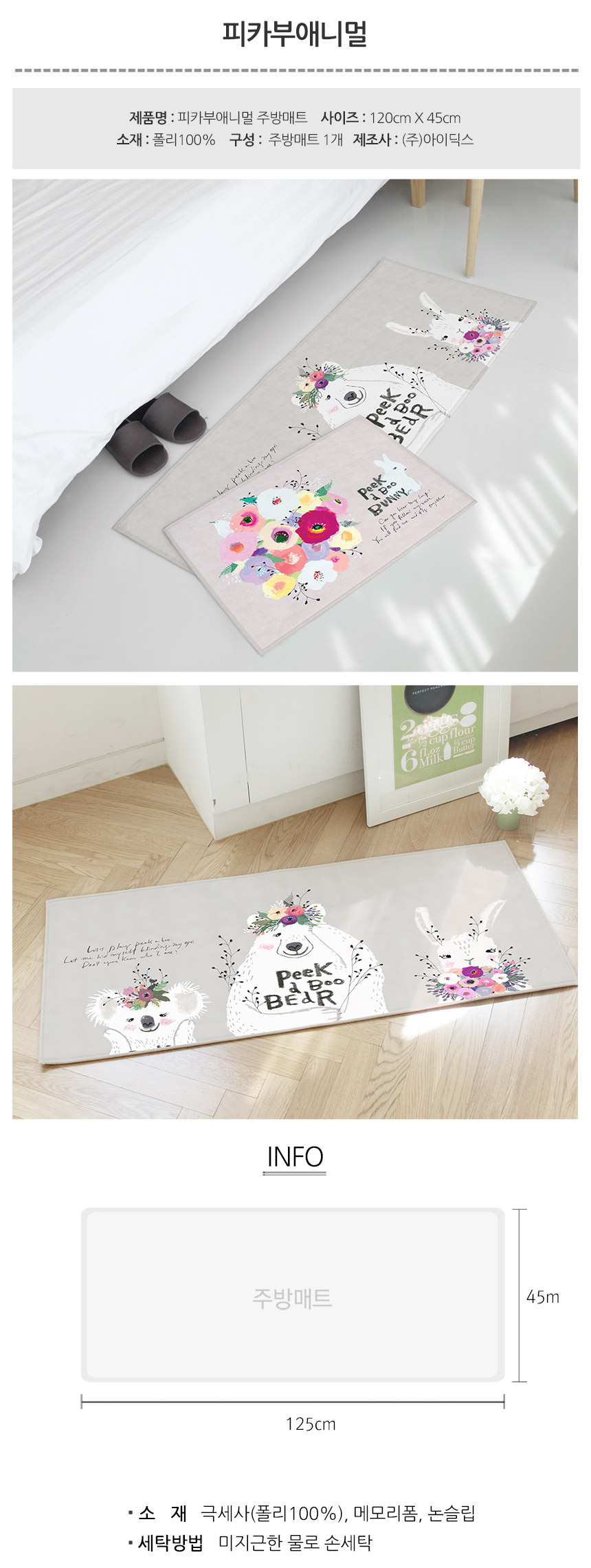 거실 발매트 집꾸미기 120x45cm 피카부애니멀