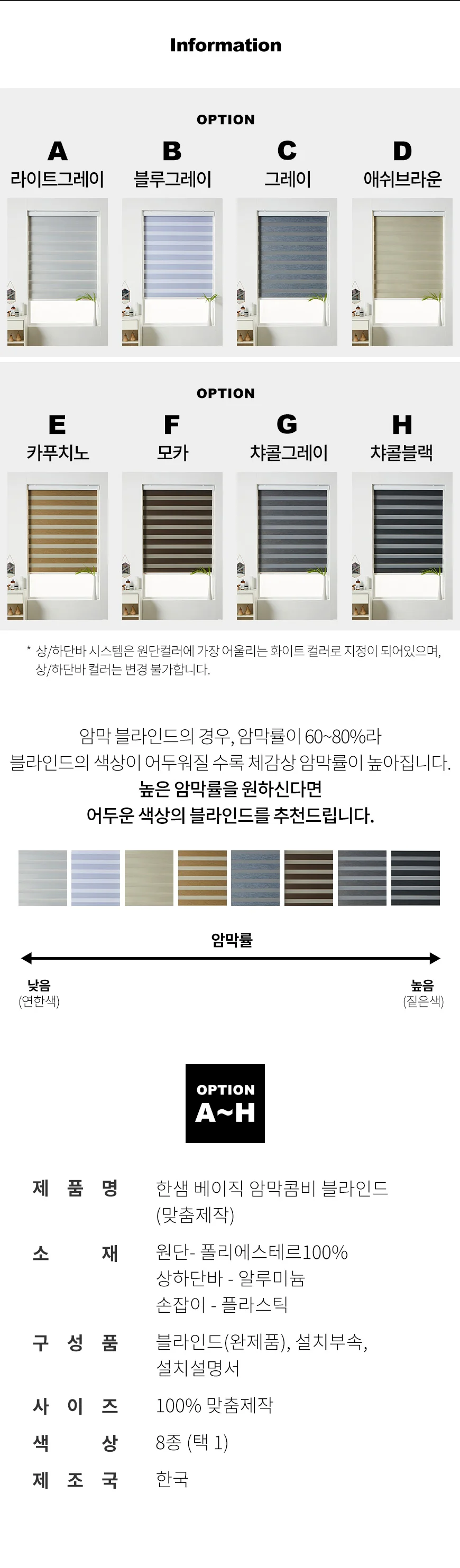 조이 BASIC 암막콤비 블라인드 (맞춤제작) DIY 블라인드설치