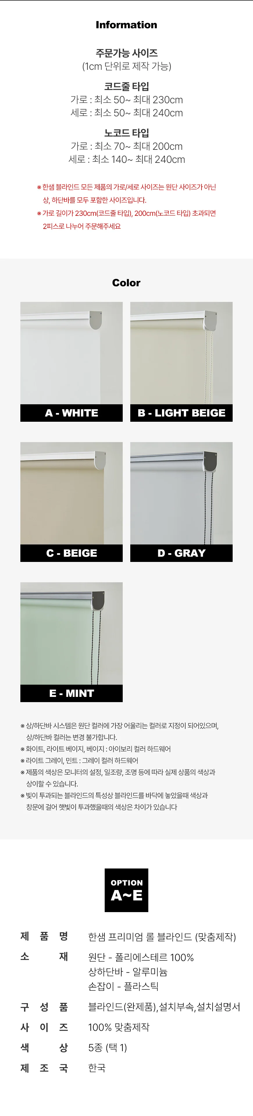 조이 PREMIUM 롤스크린 롤블라인드(맞춤제작)