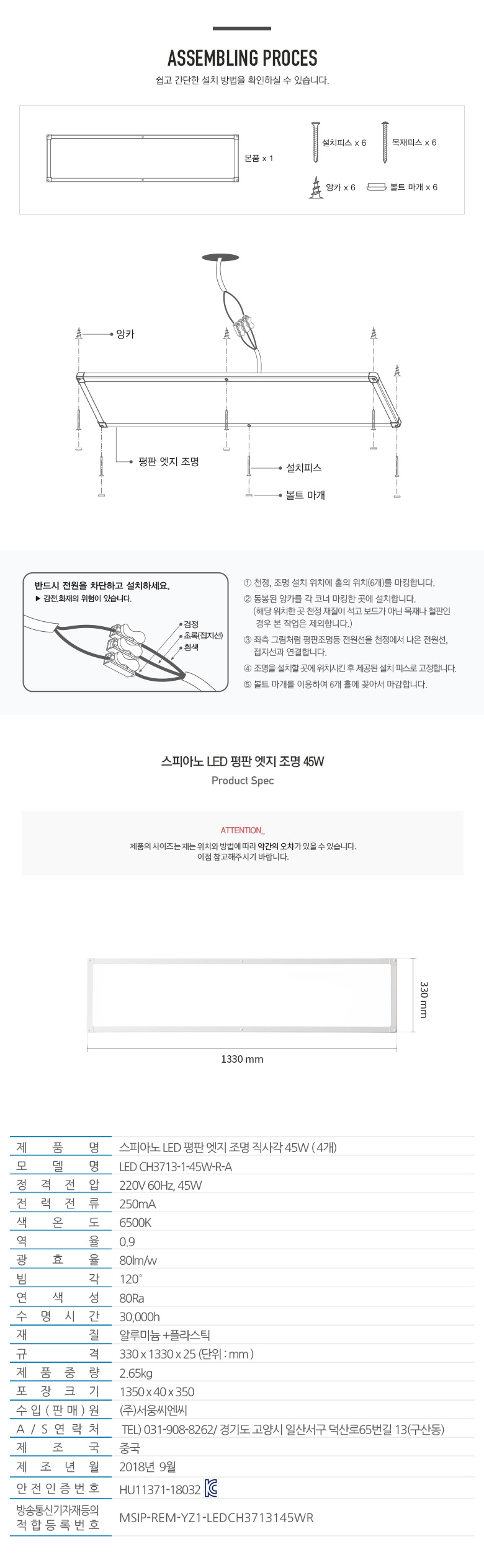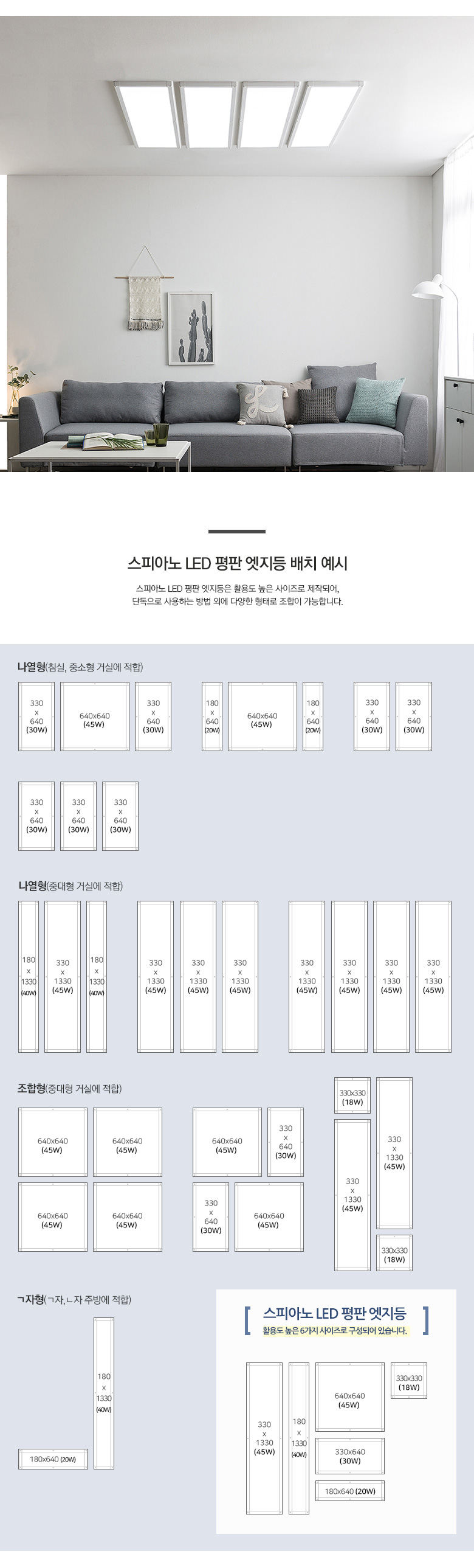 스피아노 LED 평판 엣지 조명 나열형 침실 중대형 거실 45Wx4