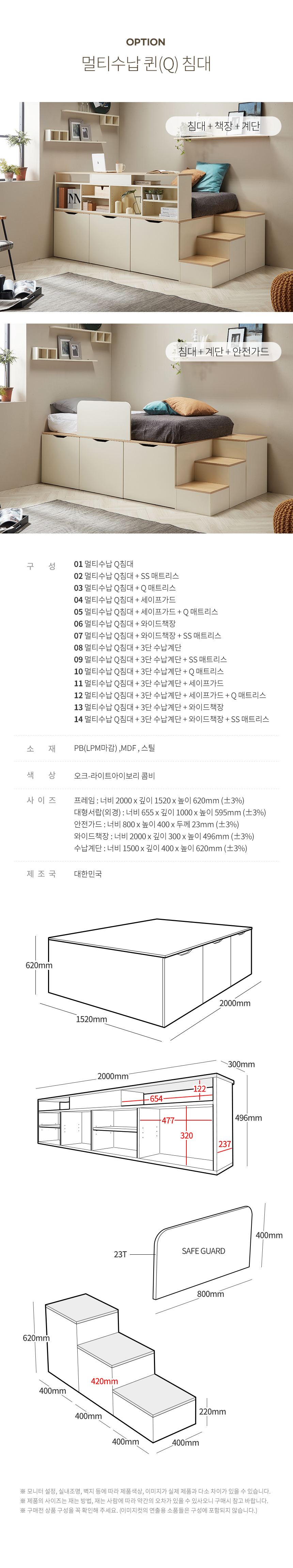 이미지 Q 멀티수납 평상형 벙커침대 계단/책장/가드 (옵션 선택)