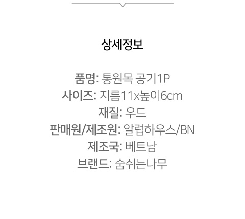 [알럽하우스] 우드식기 통원목 공기 1P