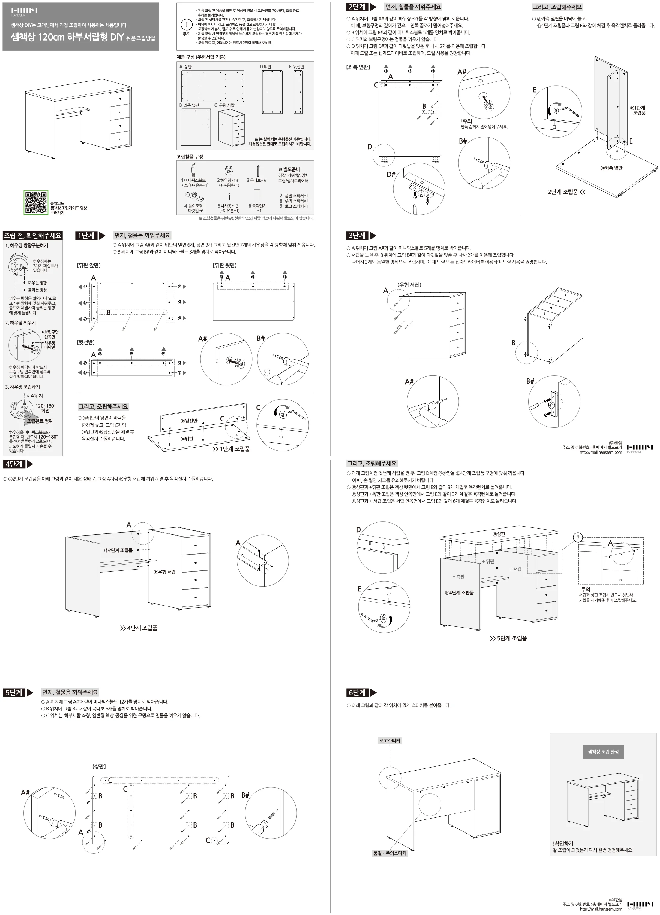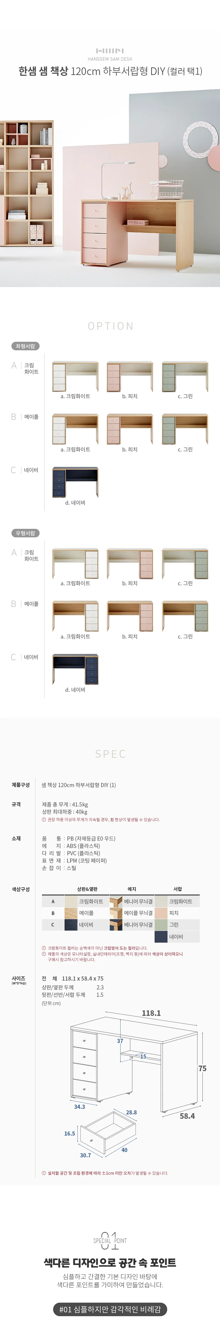 샘 책상 120cm 하부서랍형 DIY(컬러 택1)