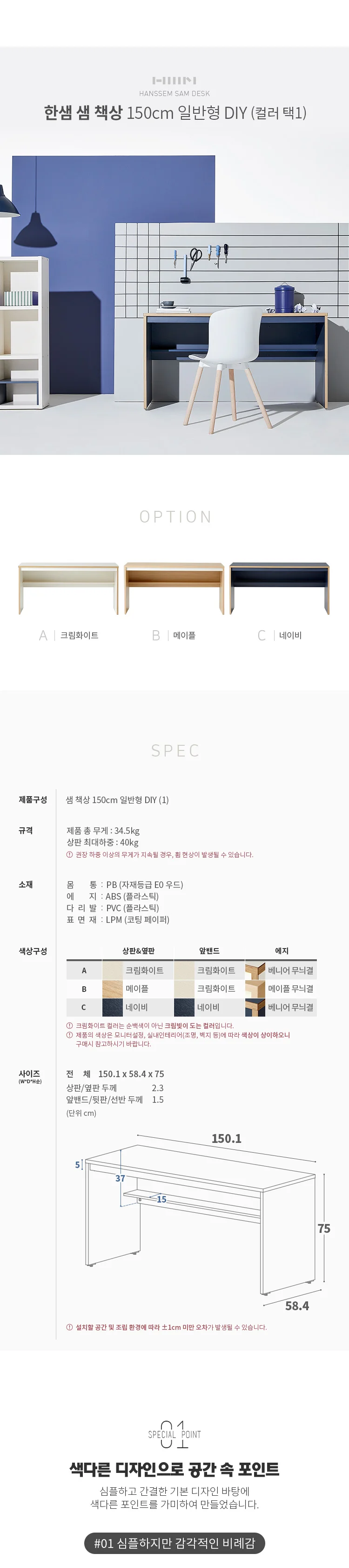샘 책상 150cm 일반형 DIY(컬러 택1)
