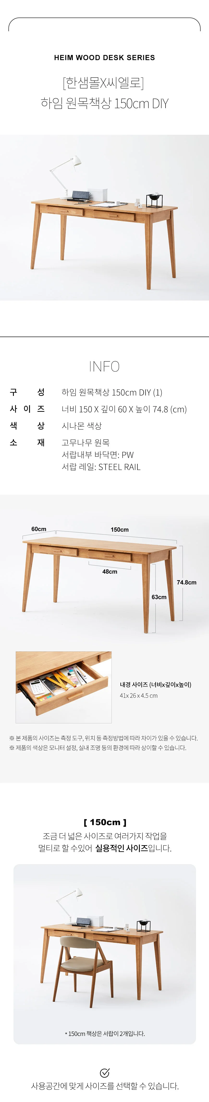 (한샘몰pick) 씨엘로 하임 원목책상 150cm