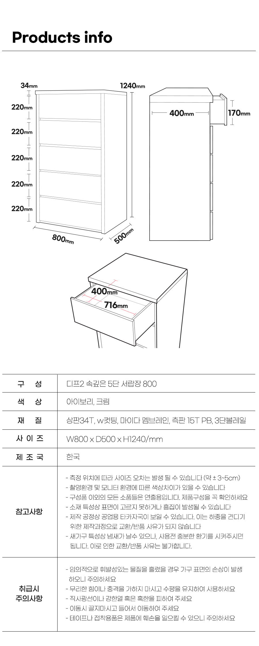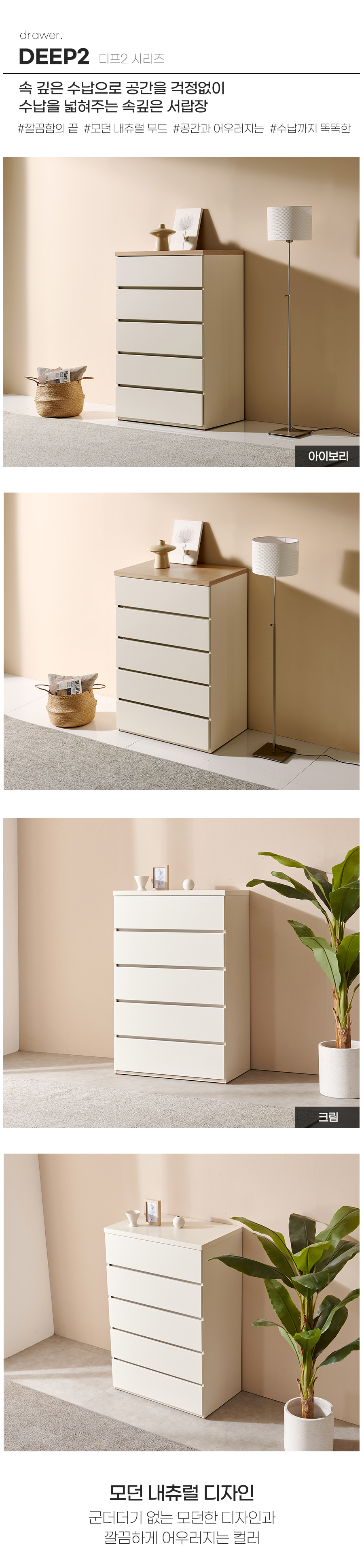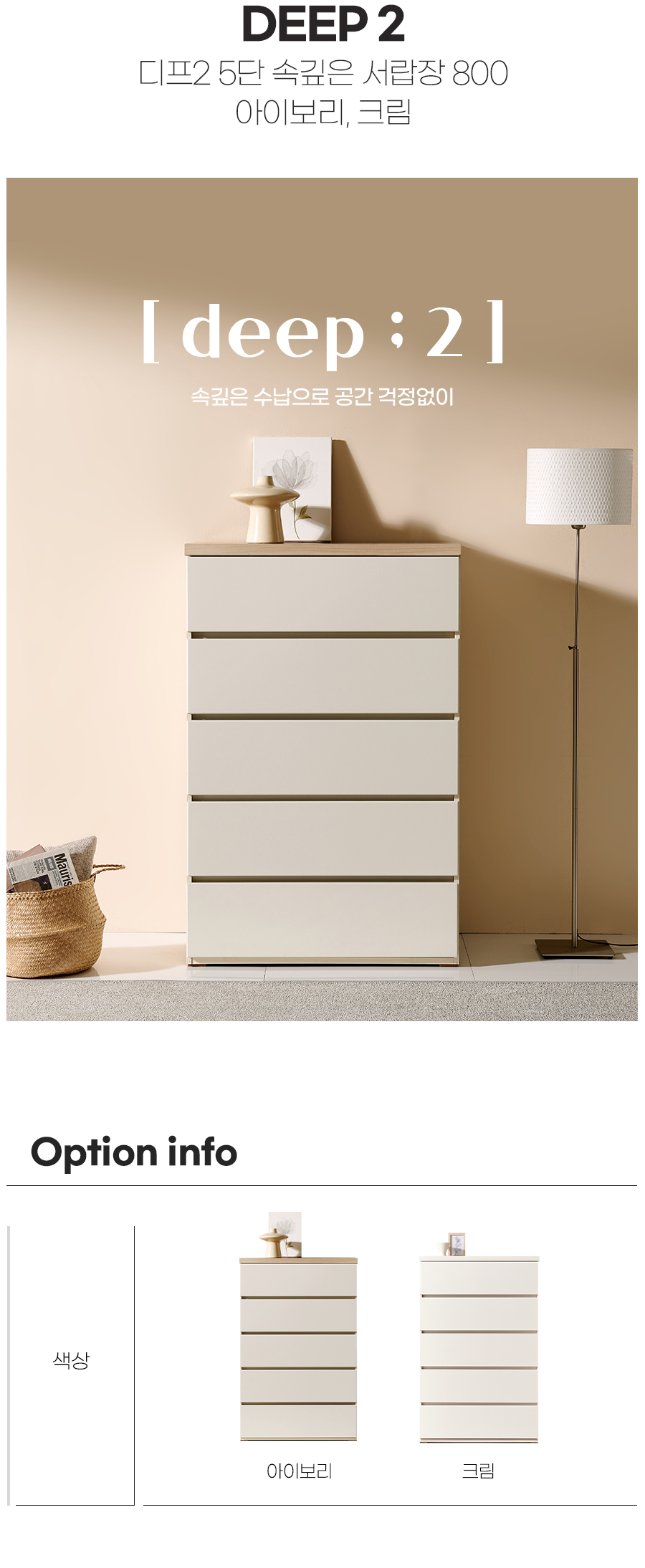 [특가 ~2/9]디프2 속깊은 서랍장 800 5단 수납장 서랍장 2color