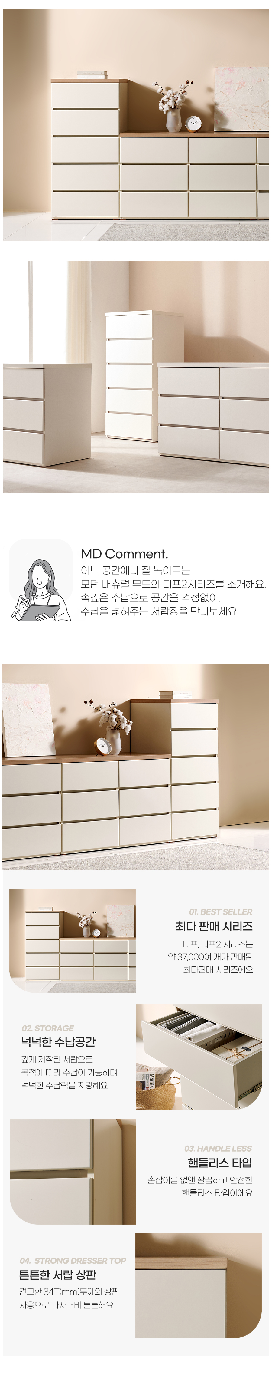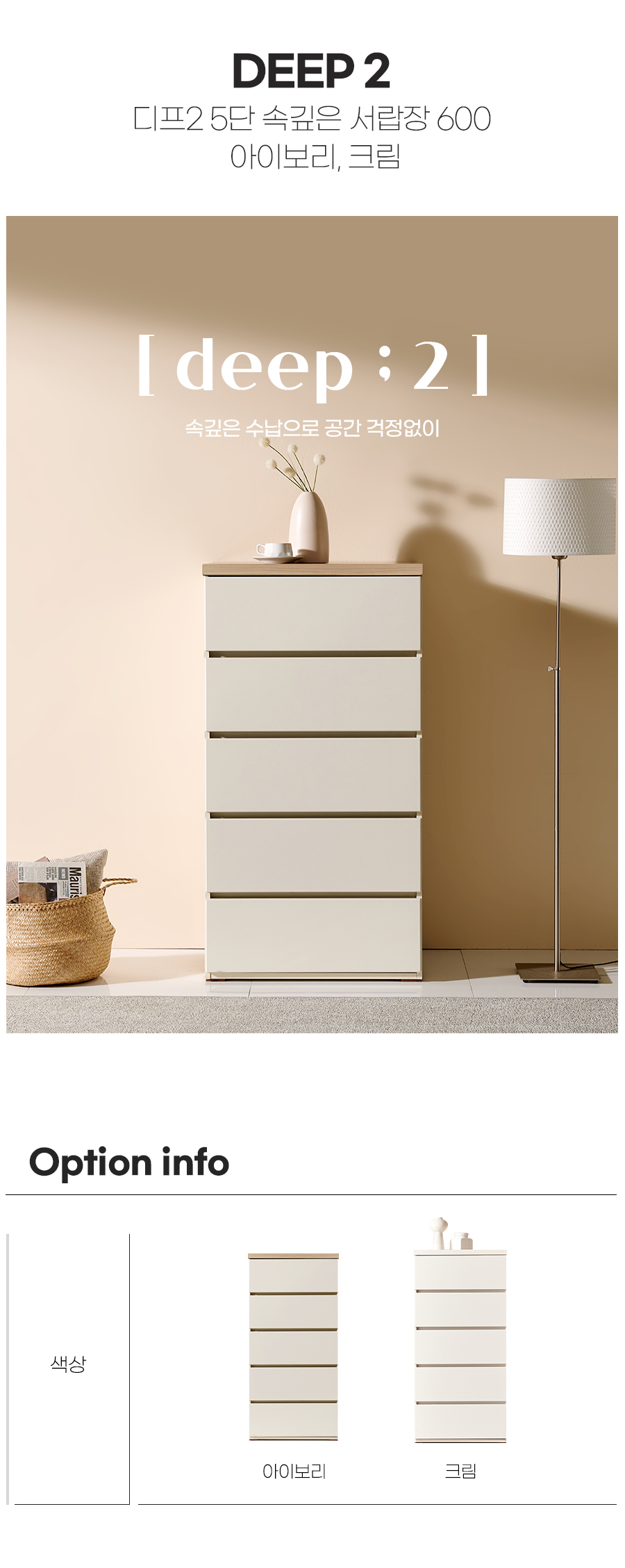 [특가 ~12/22]디프2 속깊은 서랍장 600 5단 수납장 서랍장 2color