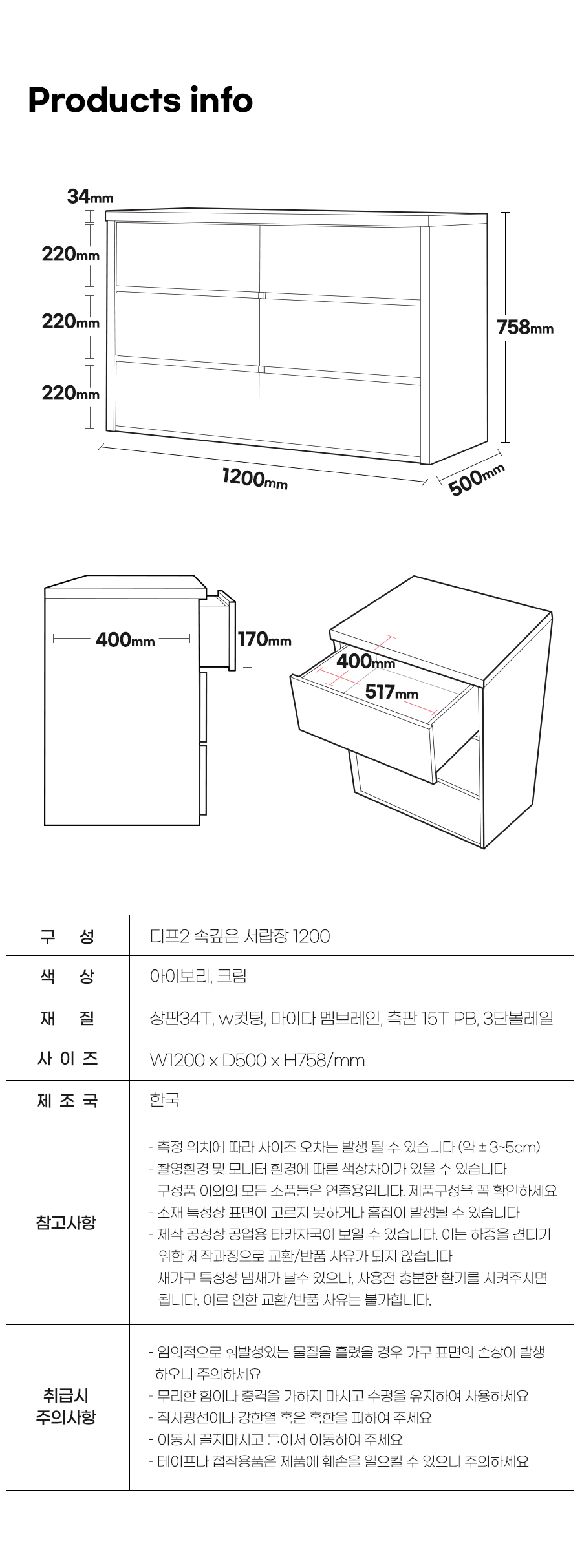 [특가 ~2/9]디프2 속깊은 서랍장 1200 수납장 서랍장 2color