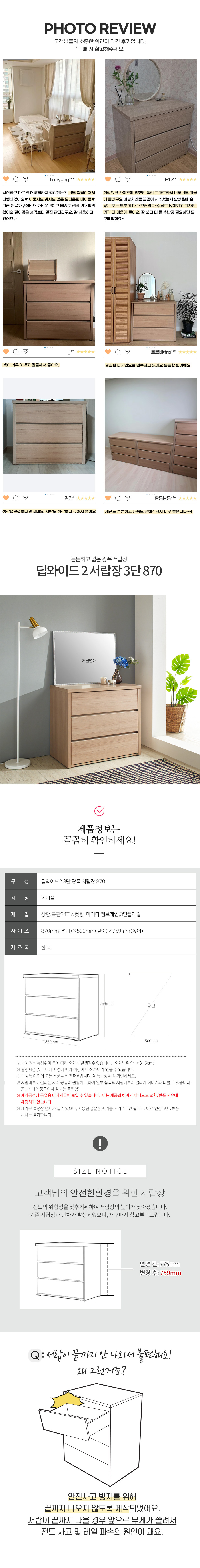 딥와이드2 3단 서랍장 870 광폭 수납장