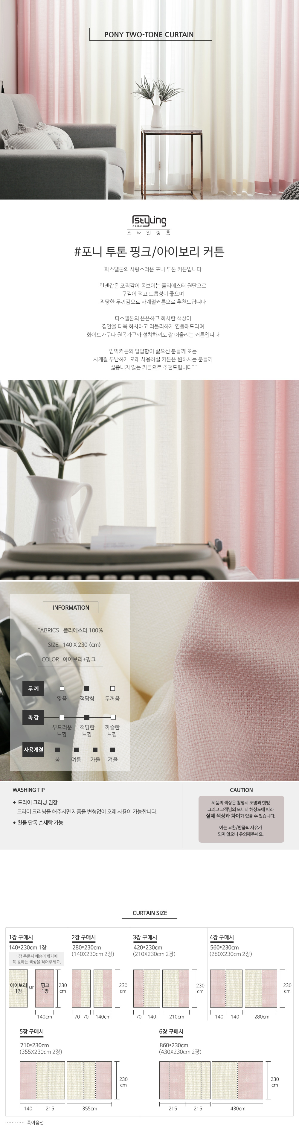 포니 투톤 핑크 아이보리 커튼