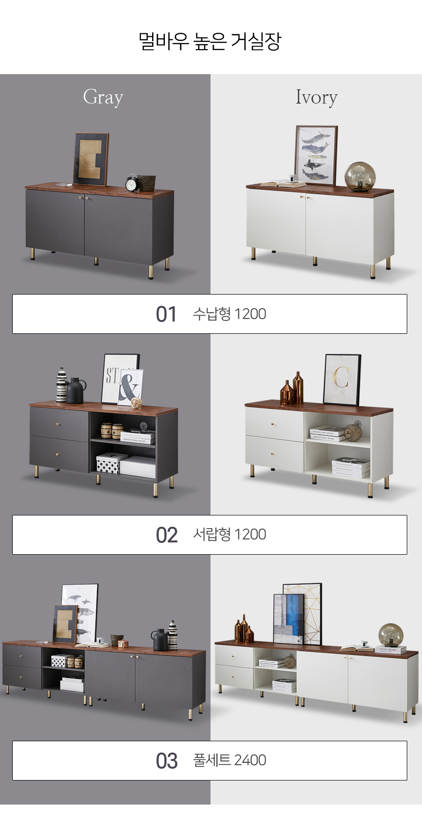 동서가구 코펜 멀바우 상판 높은 거실장 (수납 / 서랍) 2colors