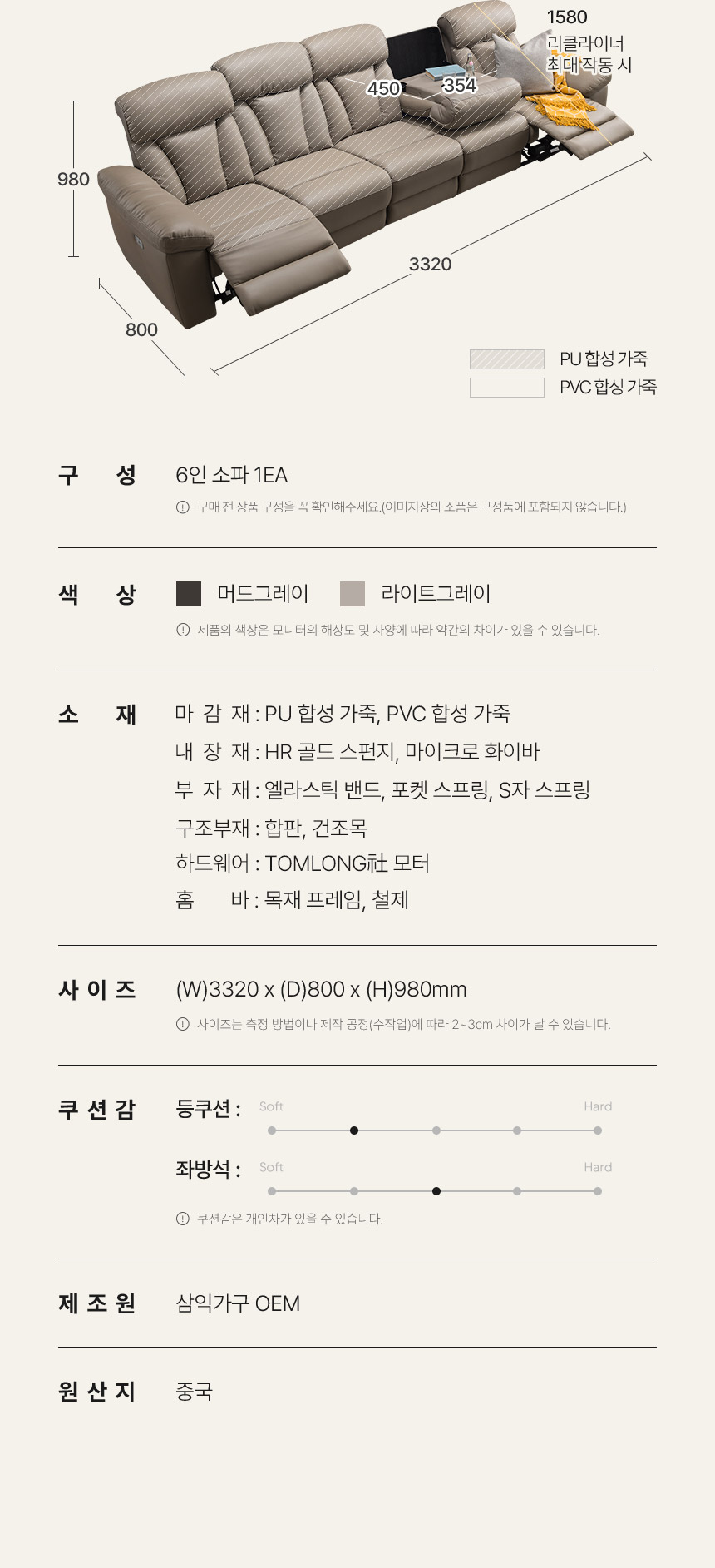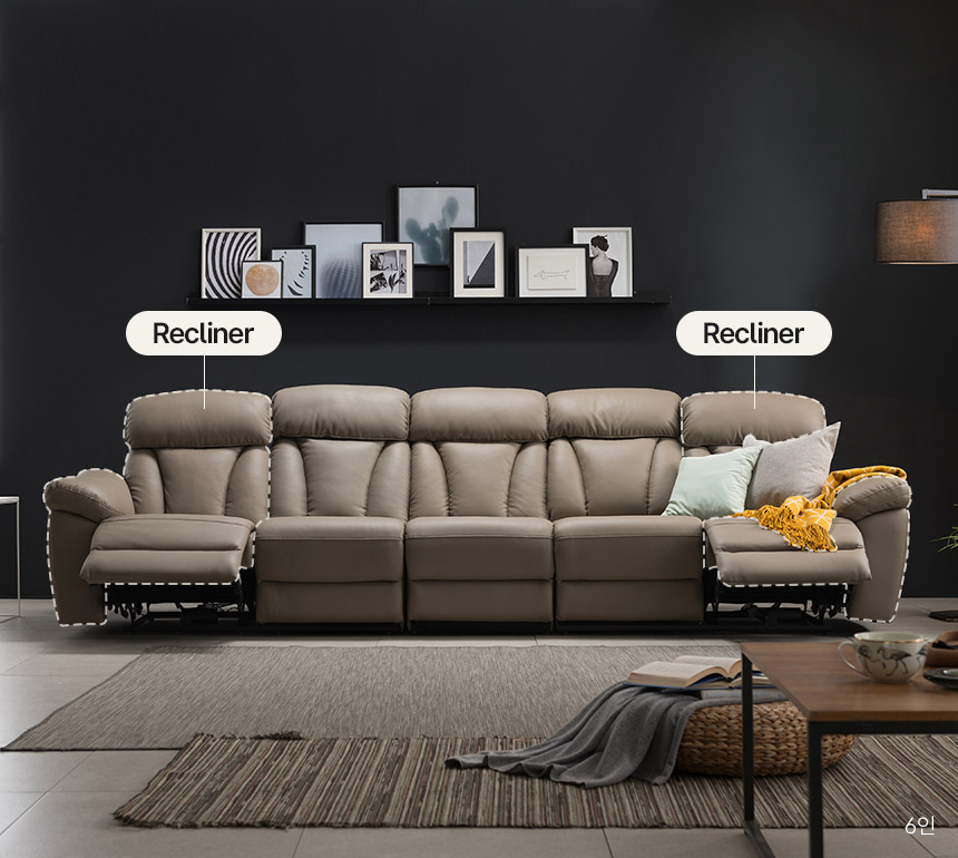 삼익가구 프라임 USB 6인용 전동 리클라이너 가죽소파(양방향)
