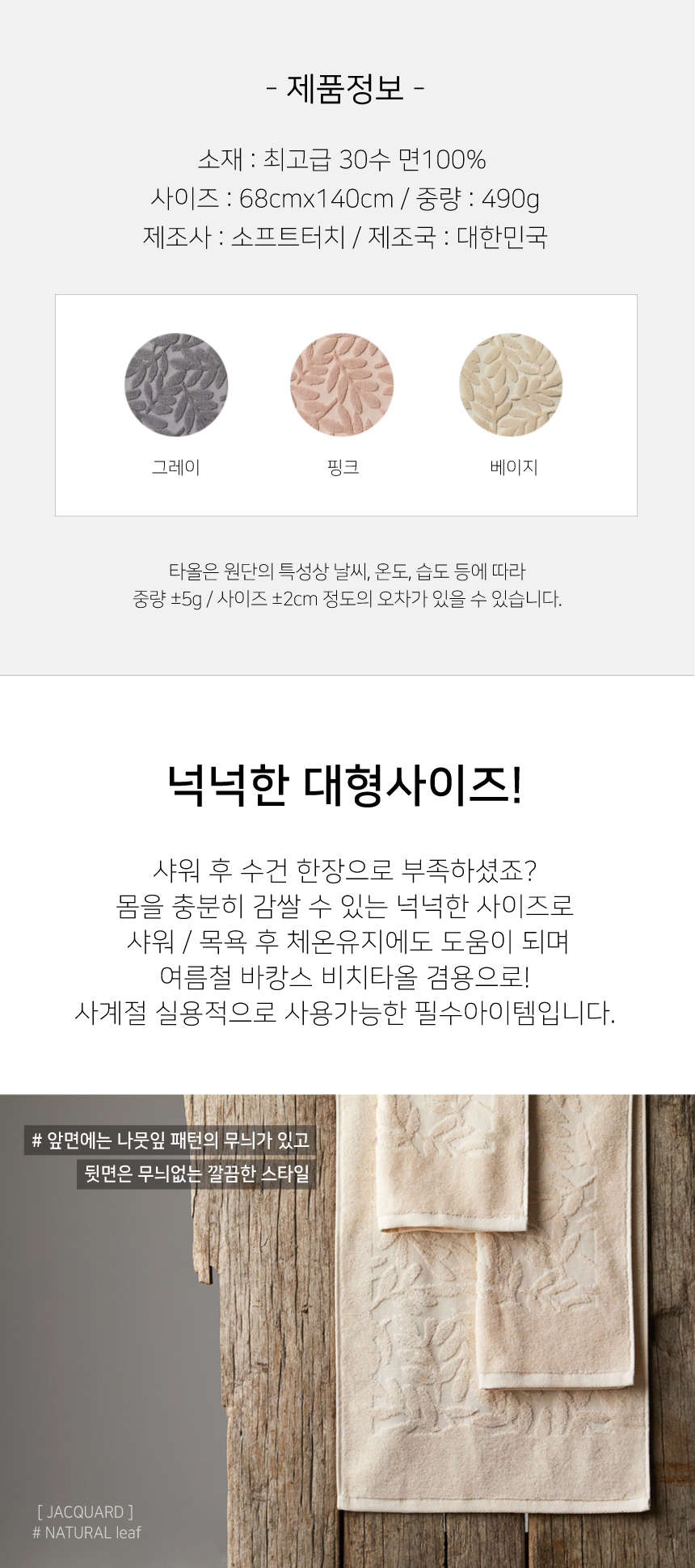 내츄럴 대형 바스타올 490g