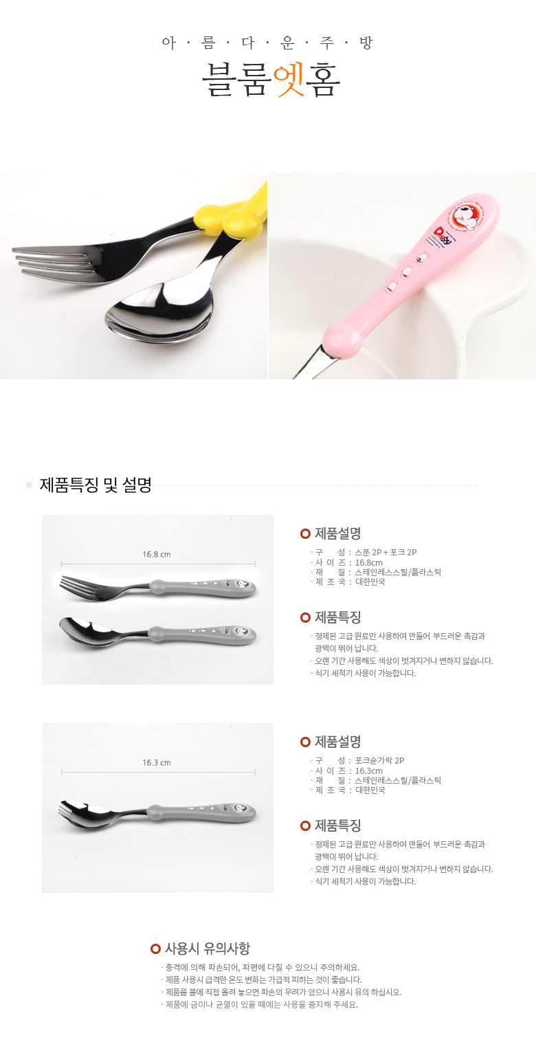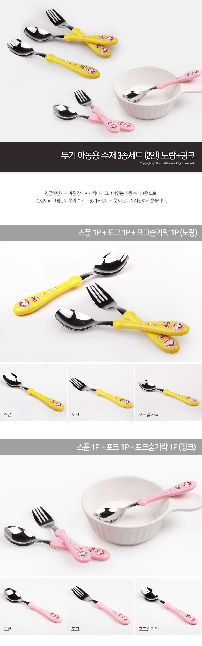 두기 아동용 수저 3종세트 (2인) 노랑+핑크