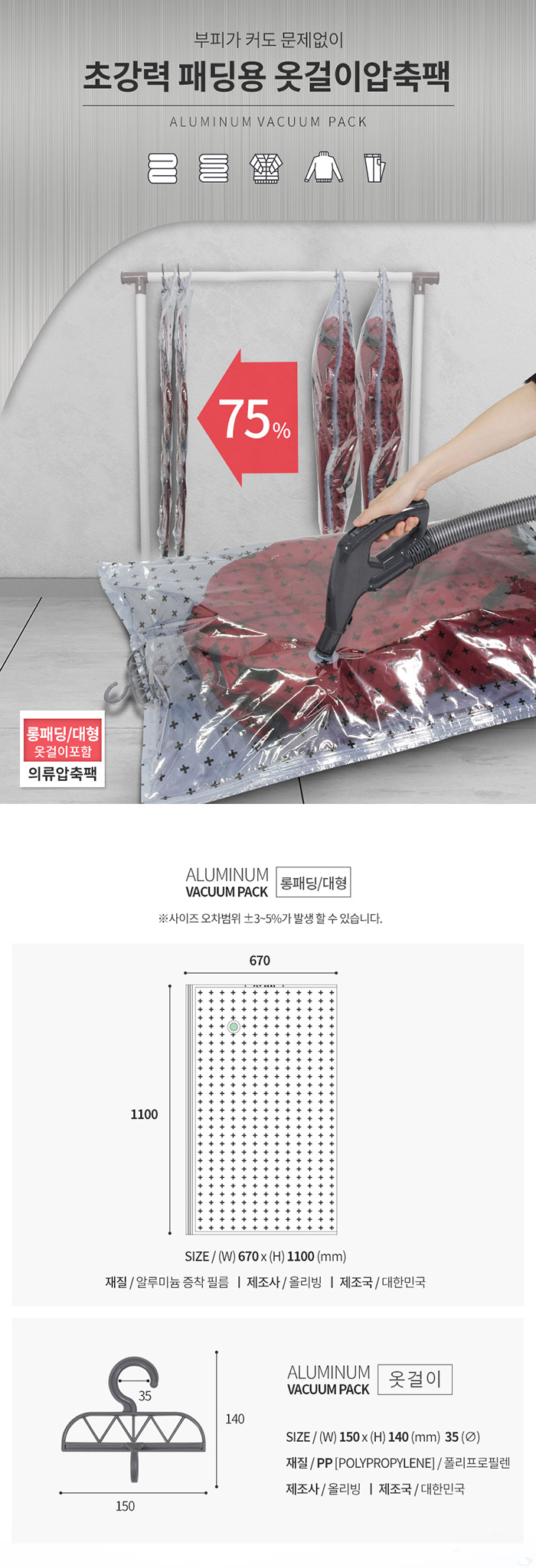 올리빙 크로스 알루미늄 옷걸이 의류 압축팩 대 2P